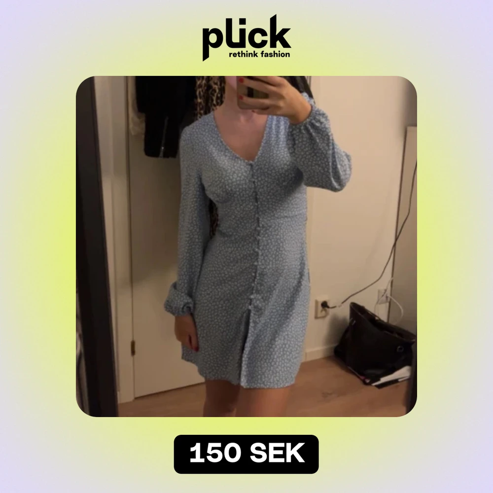 Säljer min fina blåa klänning som passar Perfket till midsommar eller bara på sommaren Aldrig andvänd, det finns med en knapp om den skulle lossna