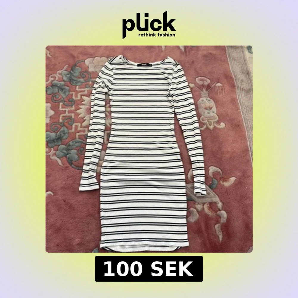 Säljer en vit ribbad klänning med svarta ränder från BikBok. Klänningen har lång ärm,och en tight passform. Perfekt för sommaren