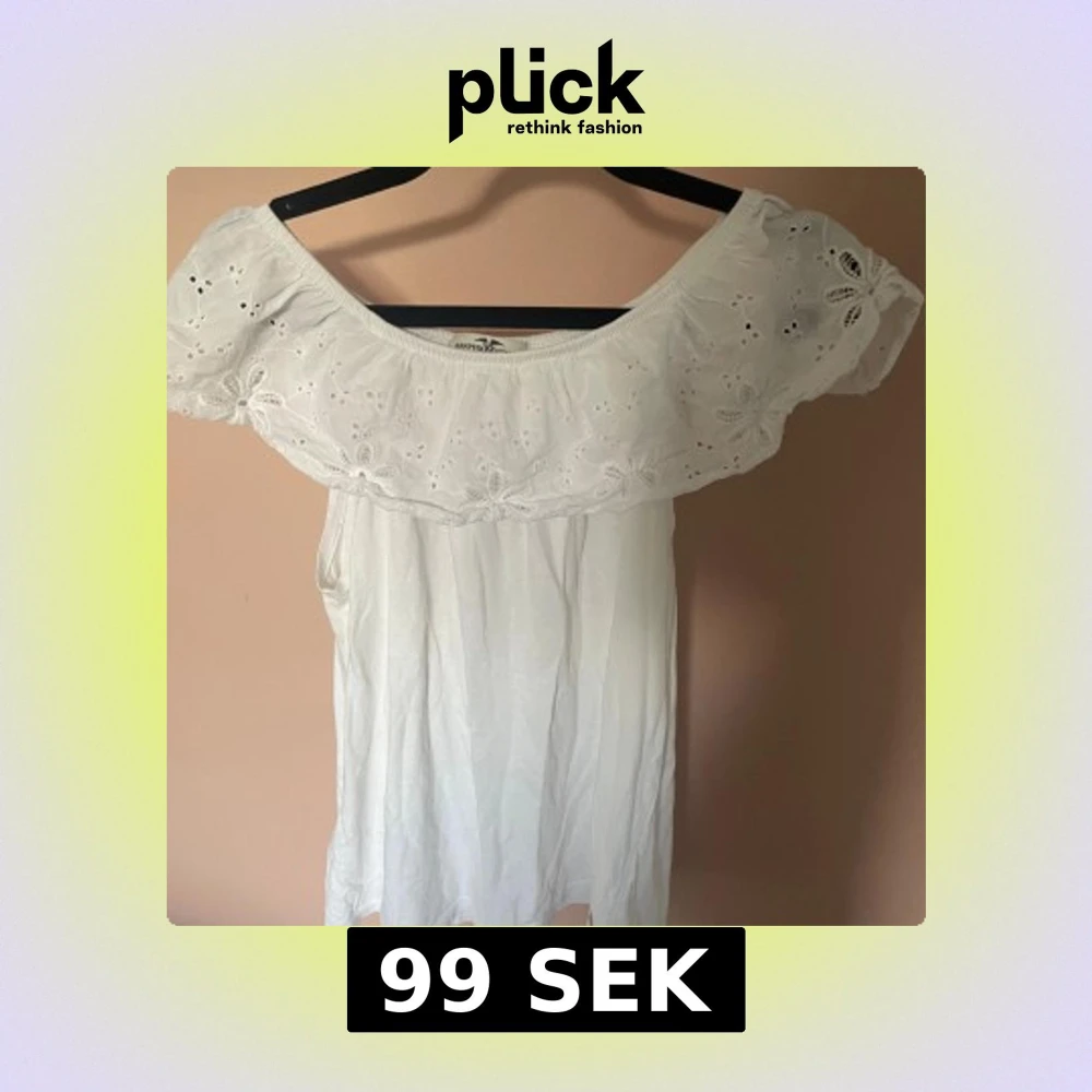 Superfin vit blus frĂ„n Hampton Republic med offshoulder-modell och bred volang upptill. Blus har broderade blommor och hĂ„lmönster pĂ„ volangen, vilket ger en romantisk och somrig kĂ€nsla. Perfekt för varma dagar och snygg till sneakers eller sandaler. Ălskarrđđ