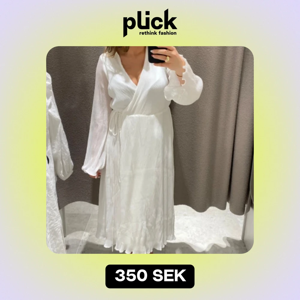 Säljer en superfin vit omlottklänning med långa ärmar och knytband i midjan. Klänningen är perfekt för sommar och vår, och den har en elegant och luftig design. Materialet känns lite tyngre men fortfarande bekvämt, vilket gör den idealisk för både vardag och fest. Passformen är normal och klänningen har en v-ringad hals. Nypris 600kr.