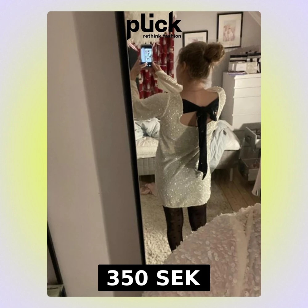 Jättefin vit paljettklänning med svart rosett i ryggen. Använd 1 gång. Egentligen i storlek M men den passar mig som är XS/S! Priset kan diskuteras🫶🏼