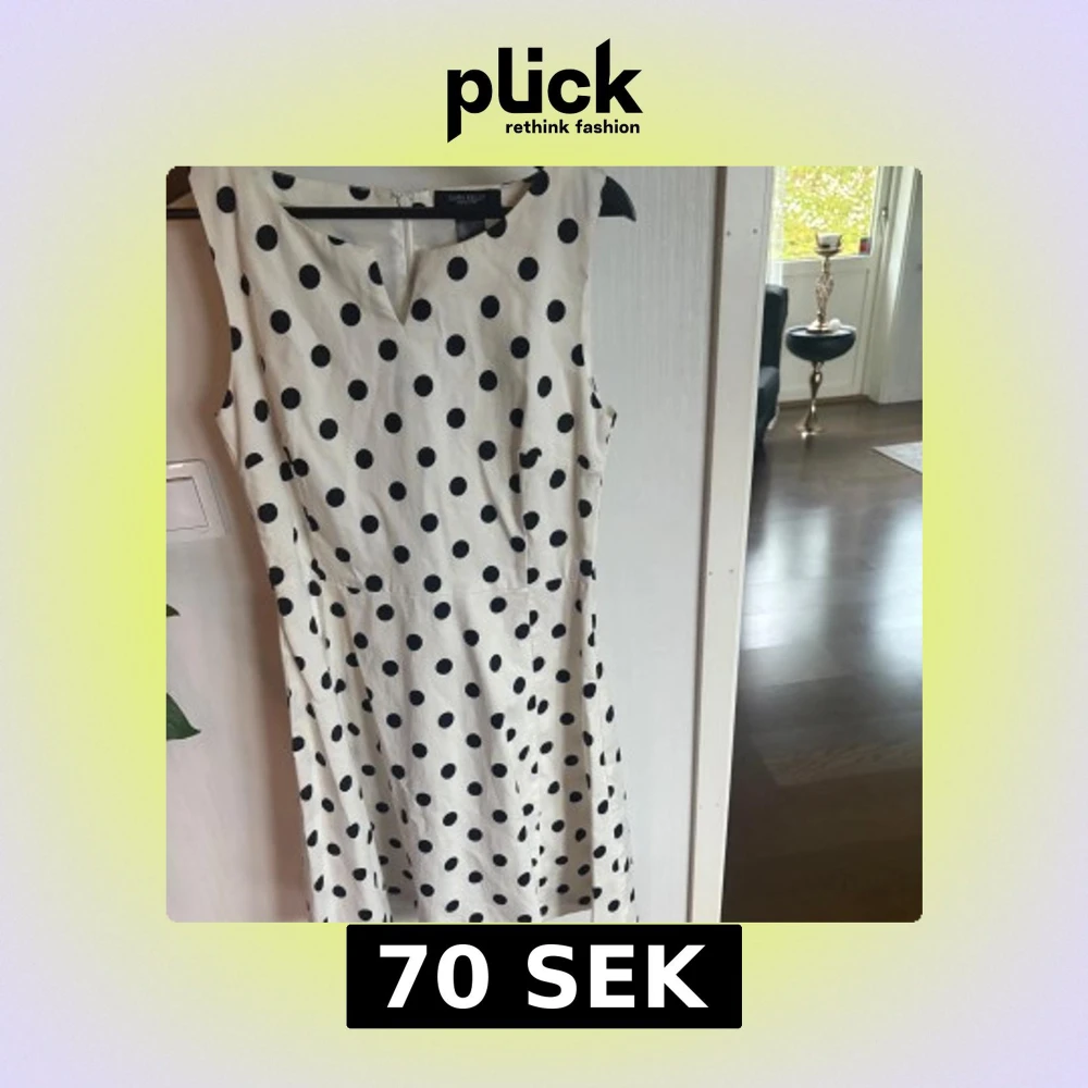 Supersöt vit klänning med svarta prickar från Sara Kelly. Ärmlös modell med figurnära passform och diskret v-ringning framtill. Dragkedja i ryggen för enkel påklädning.