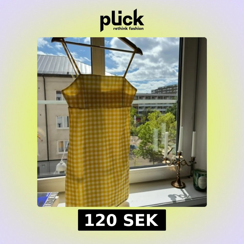 Superfin gul och vit rutig klänning från Pull&Bear i storlek S. Klänningen är kort, har smala axelband och en rak, enkel passform. Perfekt för soliga dagar och ger en riktigt fräsch sommarkänsla. Materialet känns lätt och bekvämt.