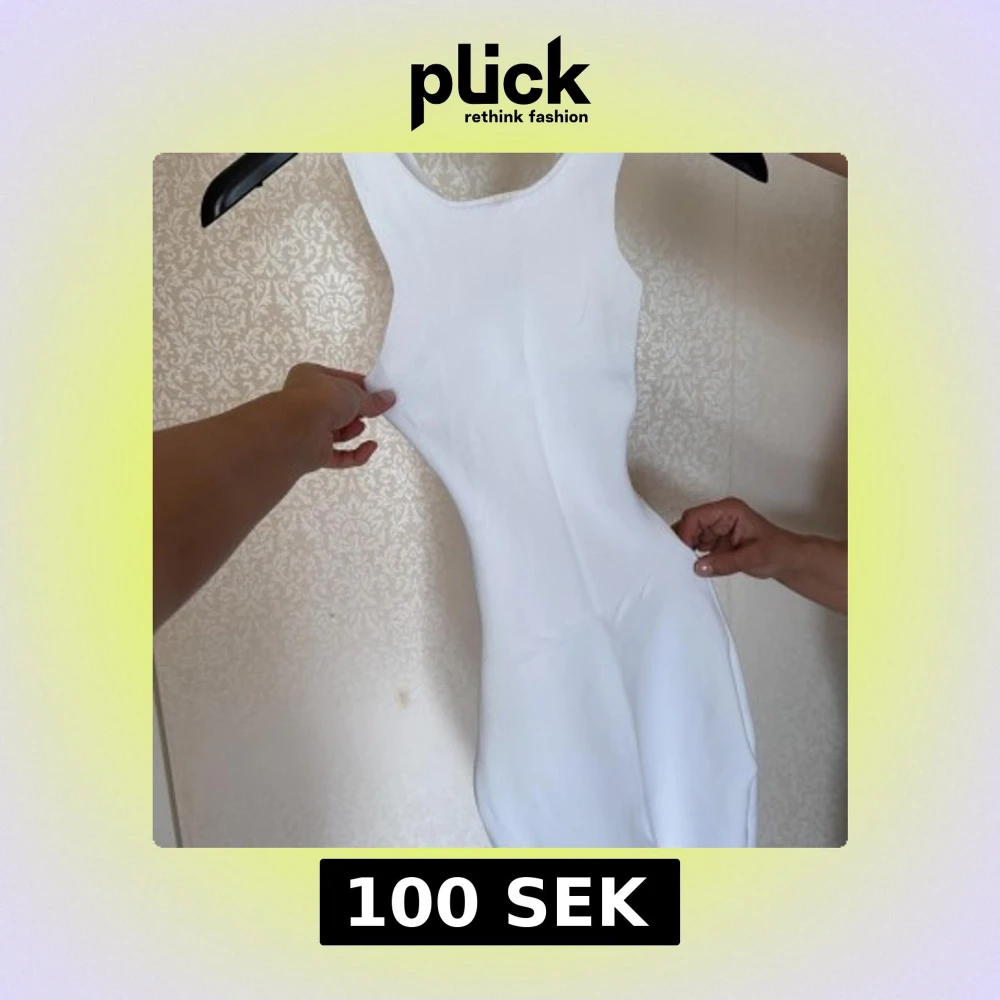 Vit ribbad tight klĂ€nning snygg i ryggen đ