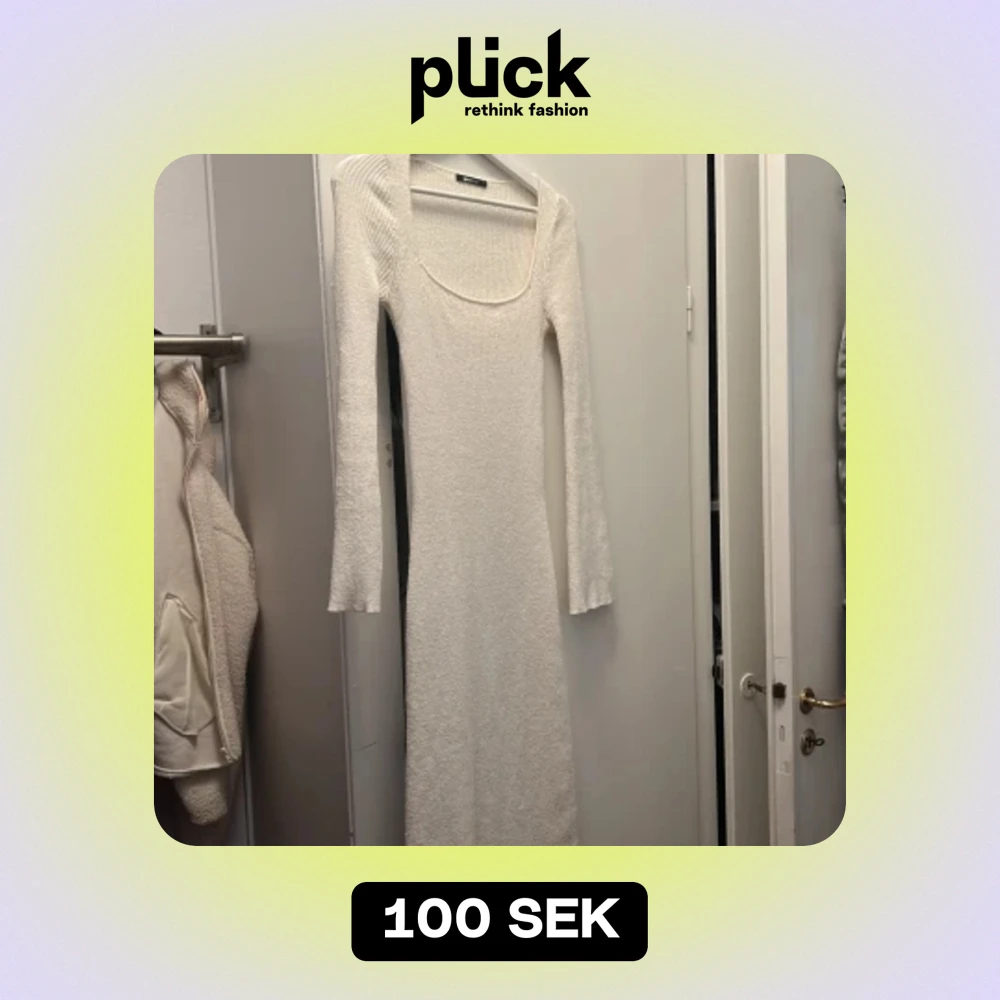 Vit ribbstickad klänning