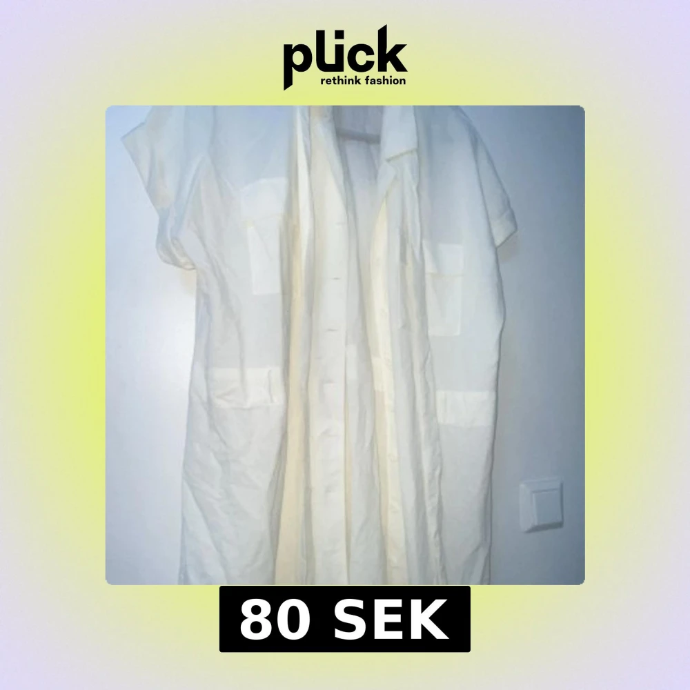 Säljer en vit skjortklänning från Bik Bok i storlek XL. Klänningen har korta ärmar, knappar hela vägen framtill och flera fickor som ger en cool utility-vibe. Perfekt för dig som gillar en avslappnad och stilren look.
