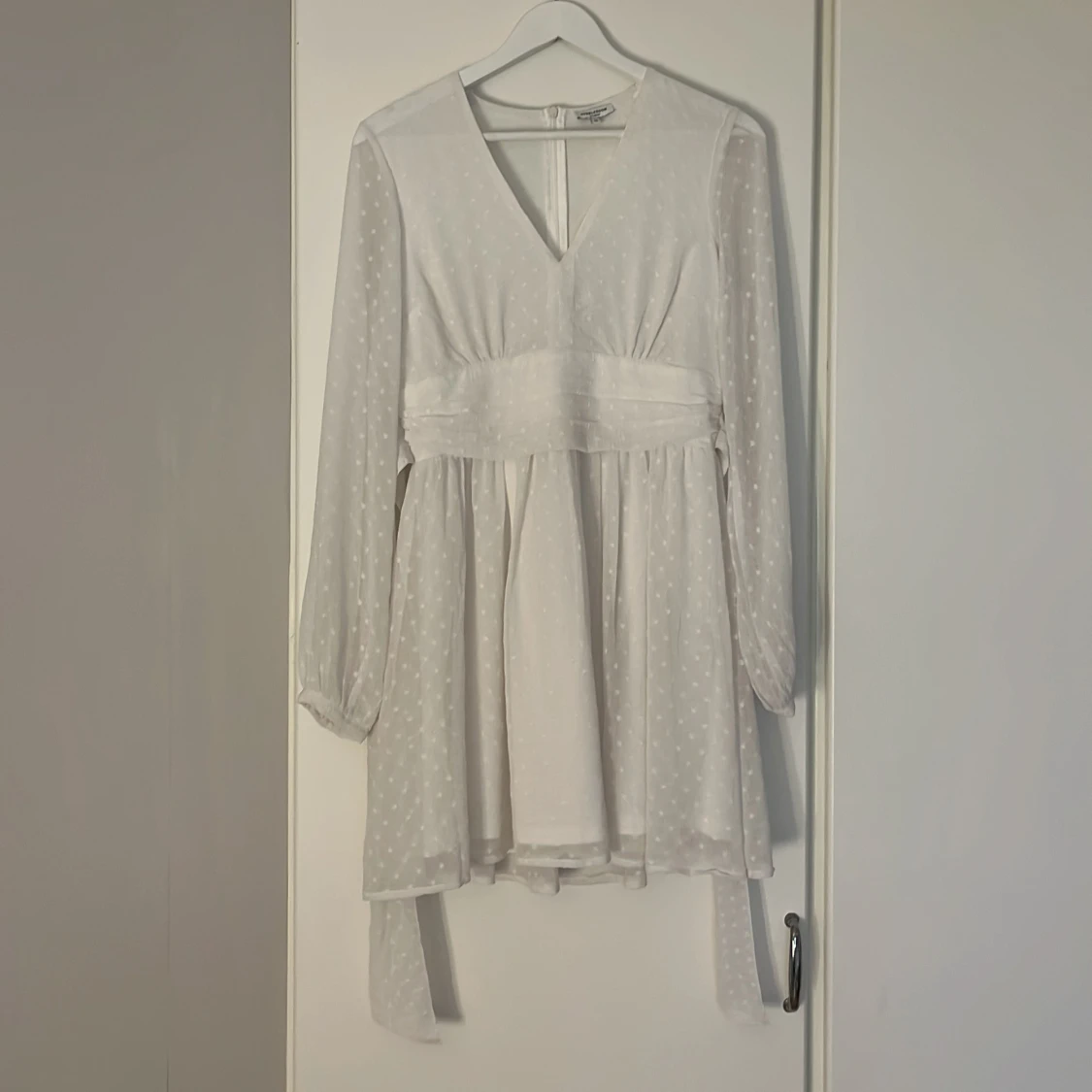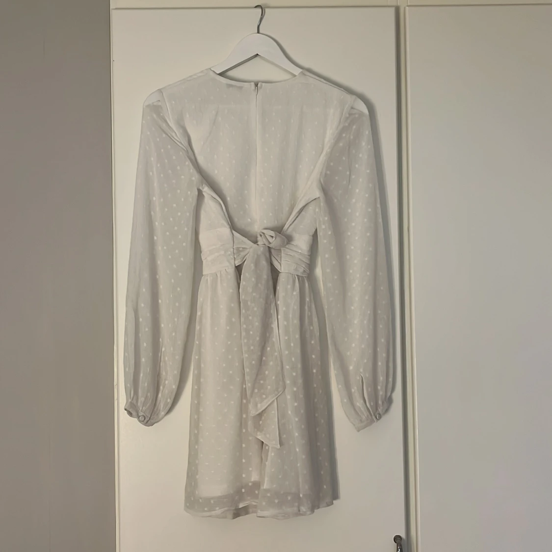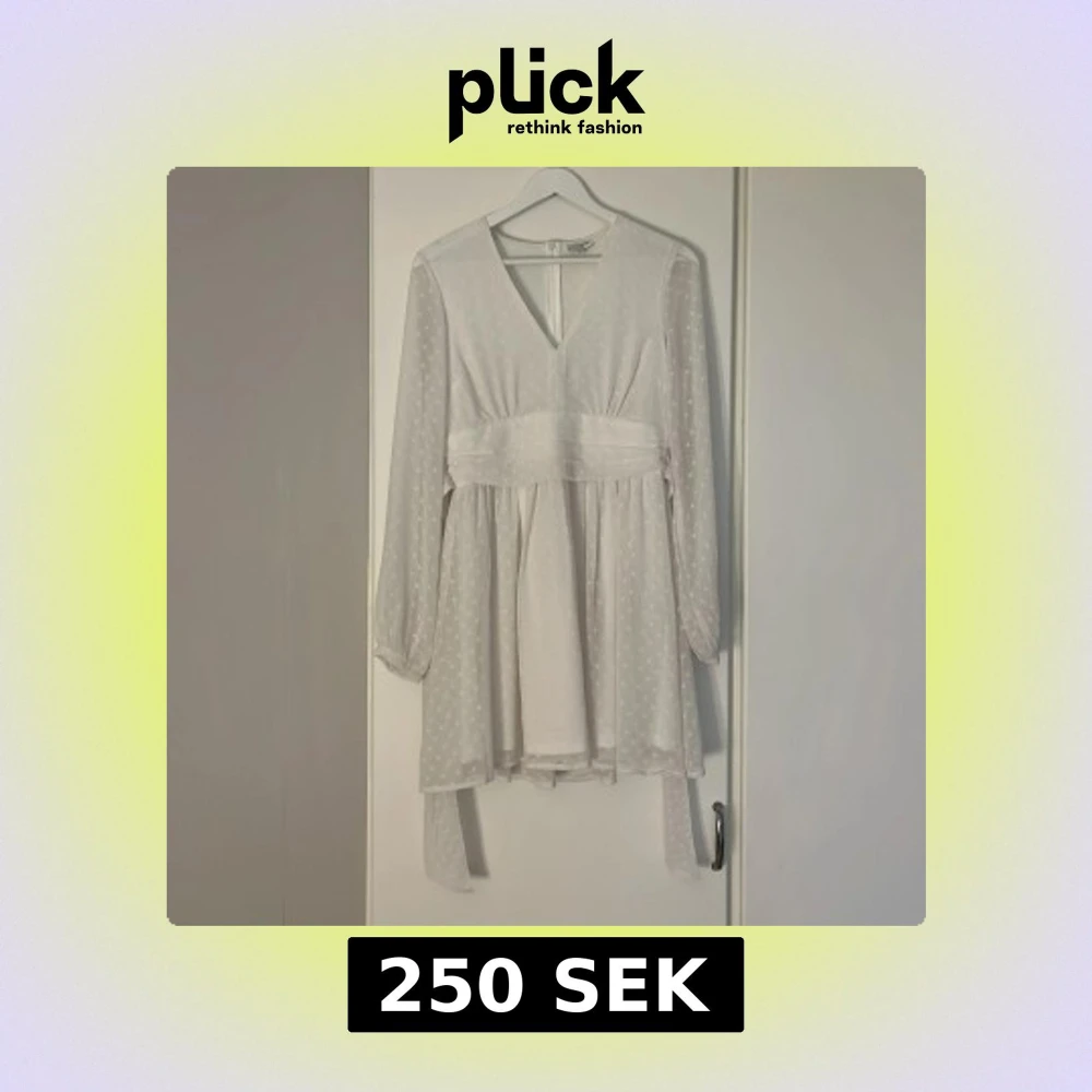 Superfin klänning som tyvärr inte uppfyllde mina krav som studentklänning. Klänningen är ursprungligen ifrån bubbelroom för 599kr men köpte den ifrån en tjej på Vinted för 340kr. Hör av dig vid frågor eller om fler bilder önskas🤍🤍