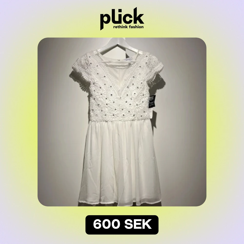 En super fin vit sommar klänning perfekt för student, midsommar, skolavslutning eller liknade. Super fin broderad överdel med pärlor/pajletter. Lapparna är kvar (helt oanvänd)