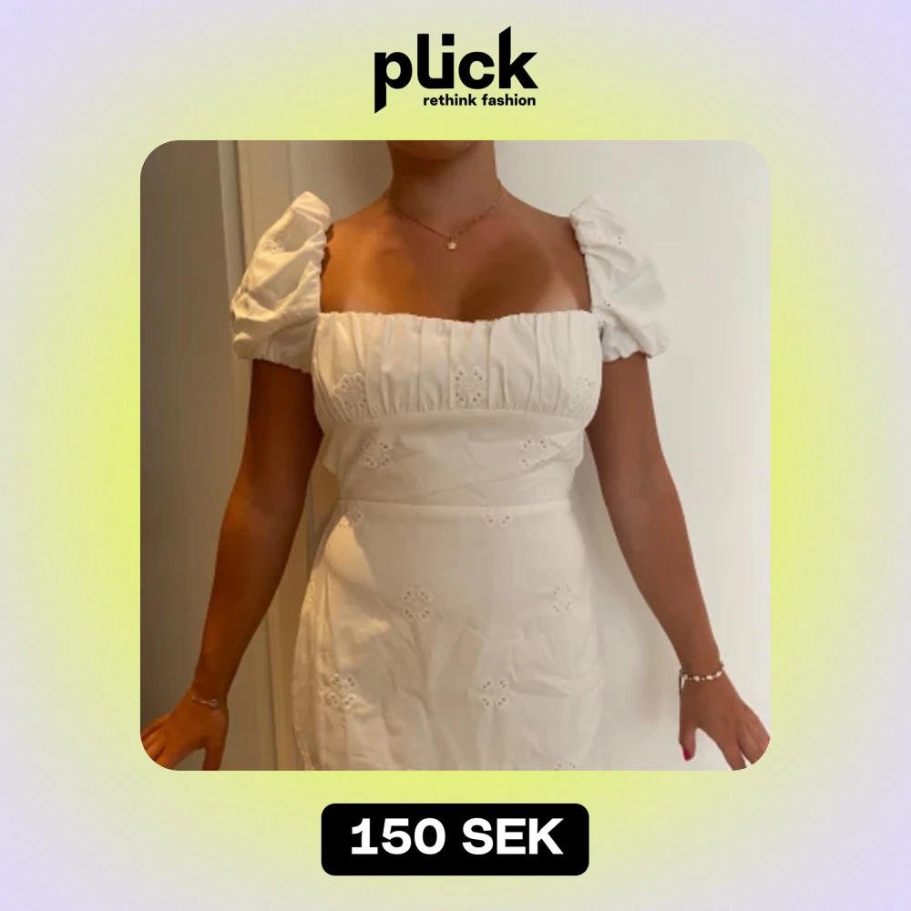 Vit kort sommarklänning med broderat mönster Snörning i ryggen. Nästan aldrig använd, bra skick Puffig arm