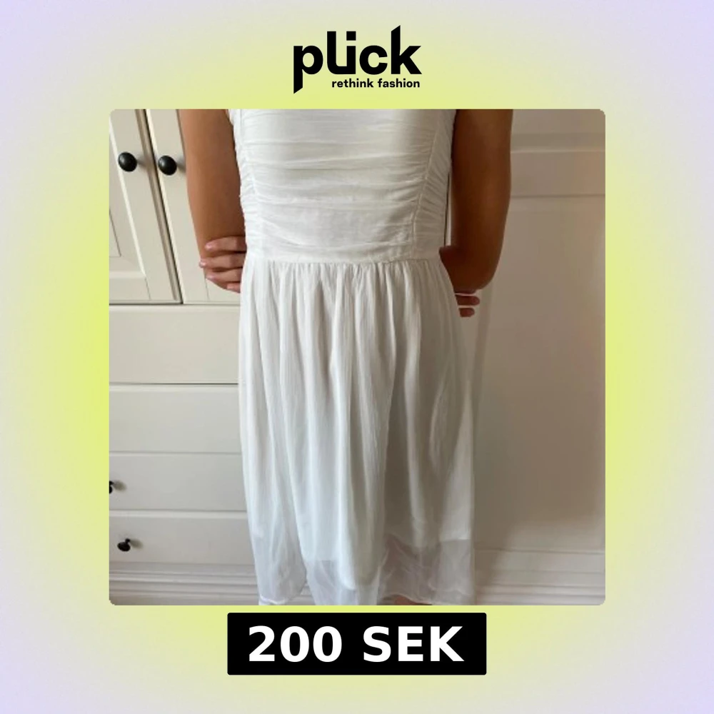 Säljer en vit klänning från Lindex med smock i ryggen och rynkade detaljer framtill. Klänningen är ärmlös och har en luftig, lätt kjol som faller snyggt. Perfekt för varma dagar och har en enkel, fräsch look. Materialet är mjukt och känns skönt mot huden.