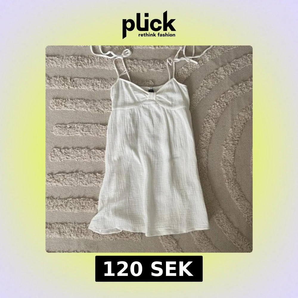 Superfin vit kortklänning från SHEIN i storlek XS. Klänningen har tunna axelband med knyt, lätt rynkad byst och smockad rygg. Tillverkad i mjuk bomull med diskret rutstruktur, perfekt för varma dagar.
