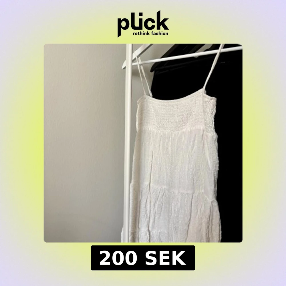 Supersöt vit klänning från Zara med smala axelband och smockad överdel. Klänningen har en luftig, lätt rynkad kjol och är tillverkad i ett tunt, strukturerat tyg som känns perfekt för varma dagar. Enkel och stilren design som ger en fräsch vibe. Kortare modell, slutar över knäna.