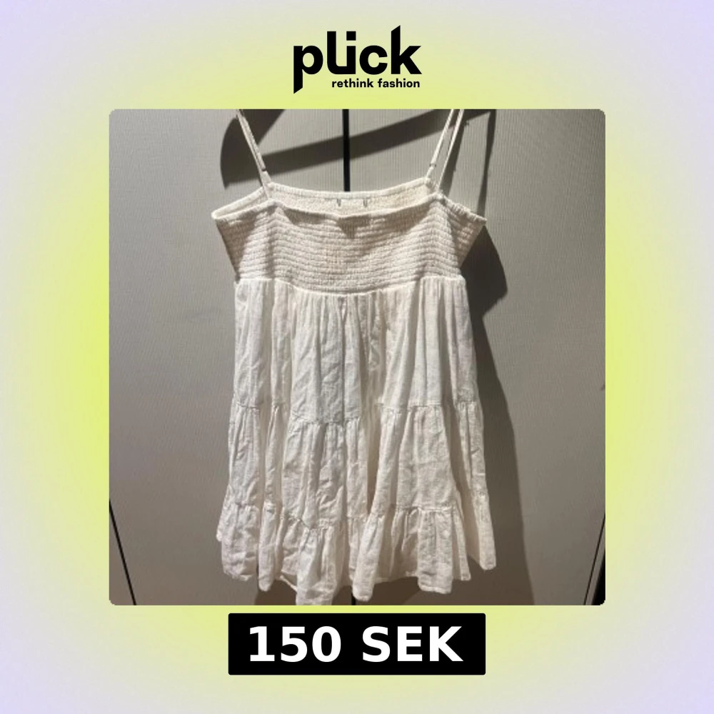 Säljer en söt vit klänning med smock upptill och tunna axelband.