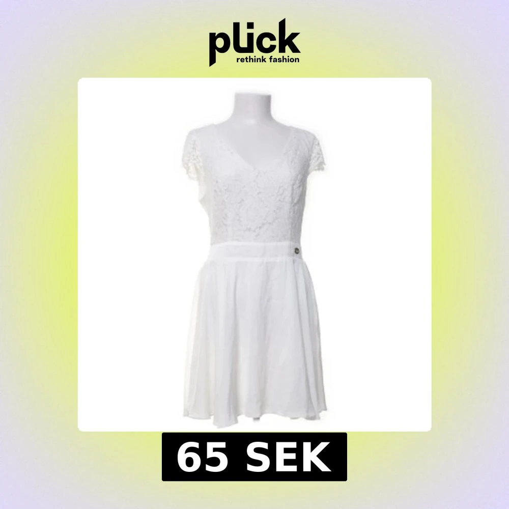 Supersöt vit kortklänning från Chiara Forthi med spets upptill och v-ringad hals. Kjolen är lätt och flödande, och ryggen har en snygg öppen detalj med knappar. Perfekt för sommarens alla tillfällen när du vill känna dig extra fin.