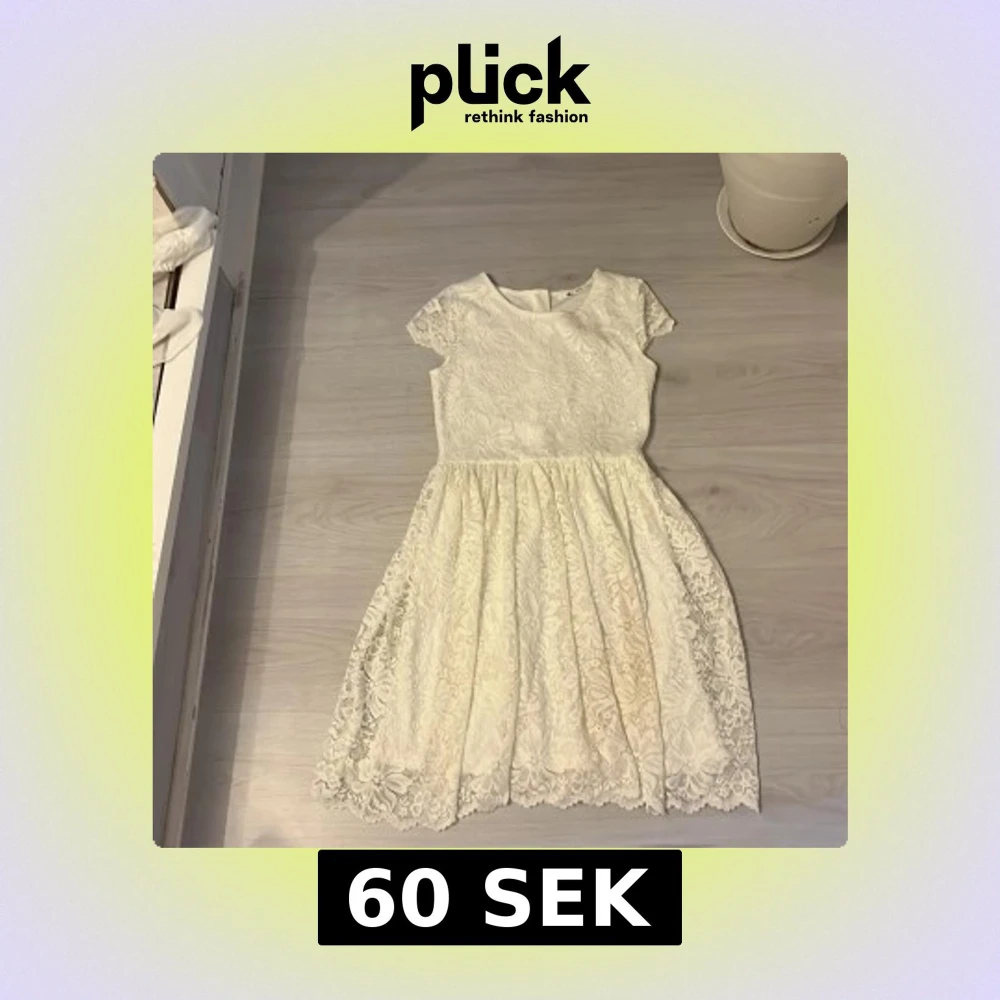 Superfin vit kortklänning från Ellos med blommigt spetsmönster och rund hals. Klänningen har korta ärmar och ett lätt utställt kjolparti som ger en söt siluett. Perfekt för sommarens alla tillfällen! Dragkedja i ryggen för enkel påklädning.
