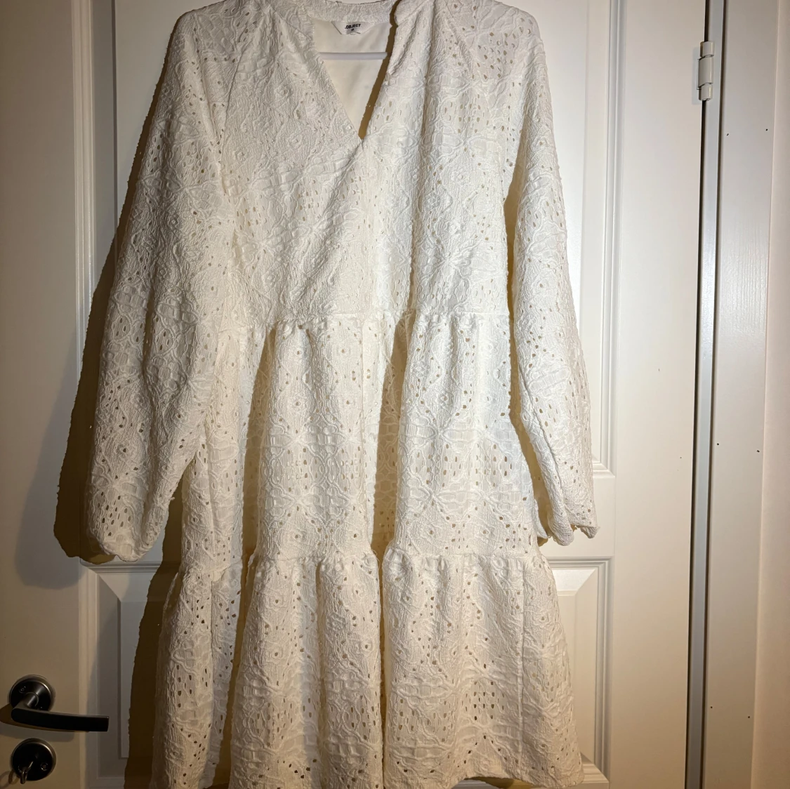 En krämvit studentklänning i gott skick, använd på min motagning endast. Storlek xs men jag är i vanliga fall en M så denna passar nog rätt så många beroende på hur man vill att den sitter.