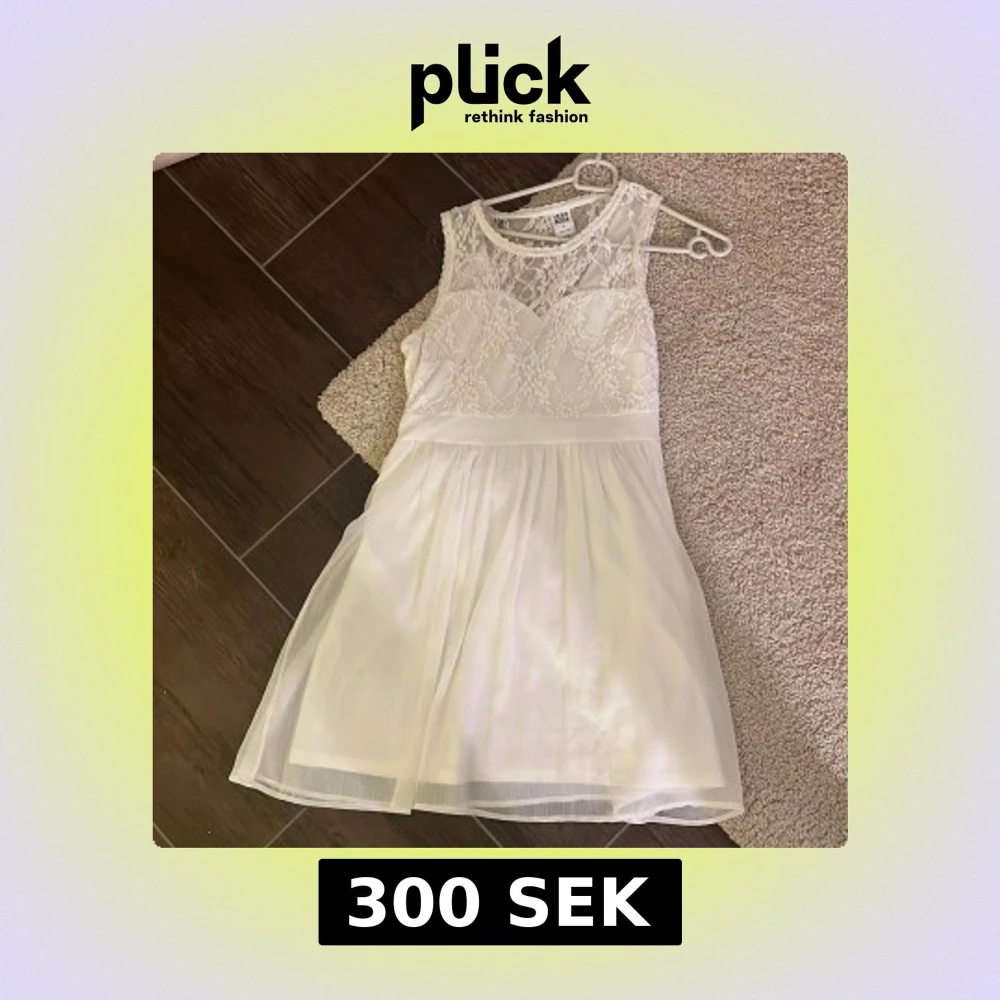 Superfin vit kort student klänning från Vero Moda med spetsdetaljer upptill och vackert fall i kjolen. Klänningen är ärmlös och har en djup v-ringning i ryggen med transparent spets. St M.