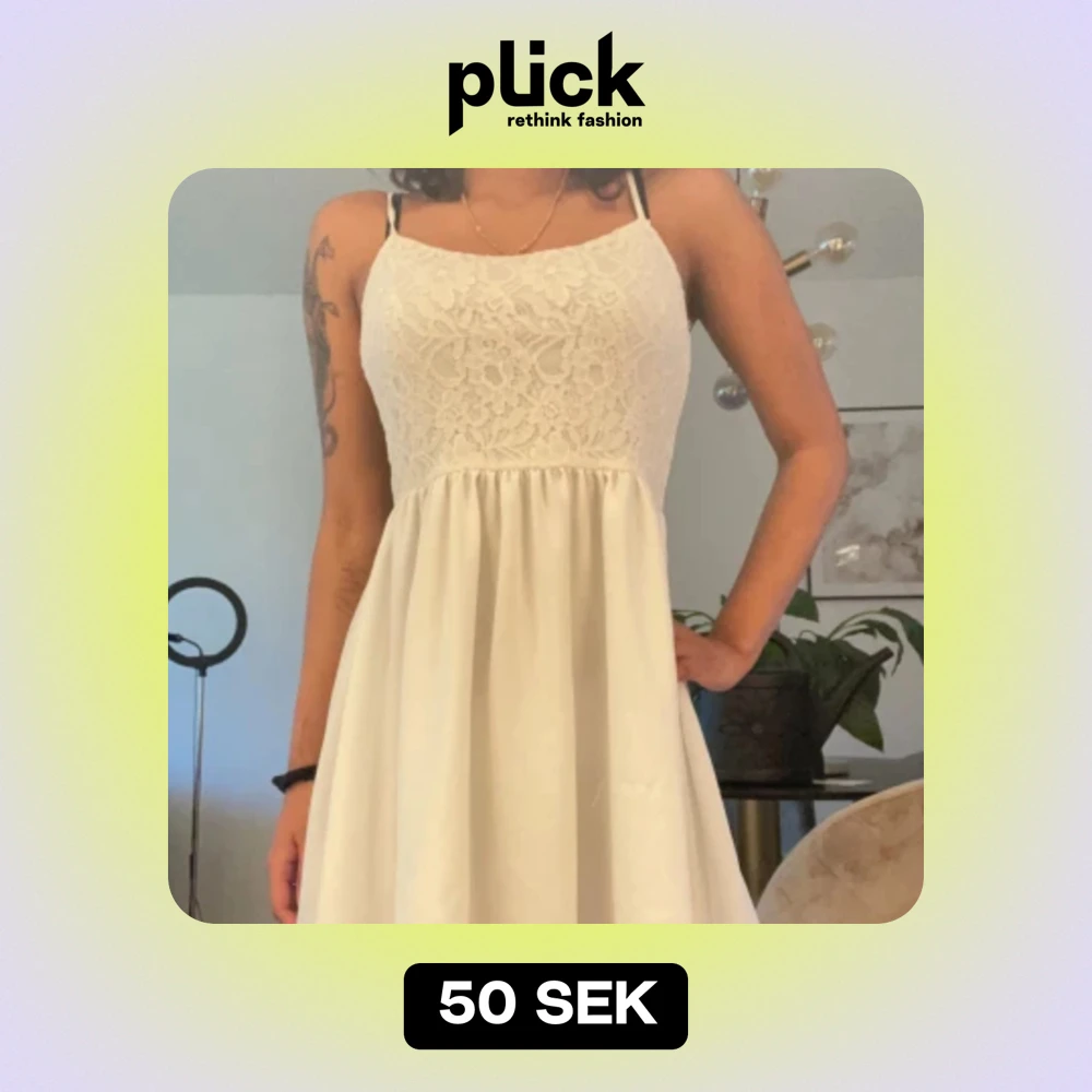Söt spetsklänning till salu! Använd ett fåtal gånger. Går ner till mitten av låret på mig som är 167 cm lång. Priset kan diskuteras!🎀