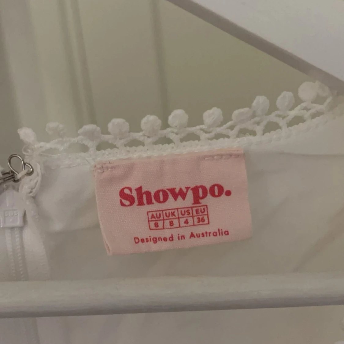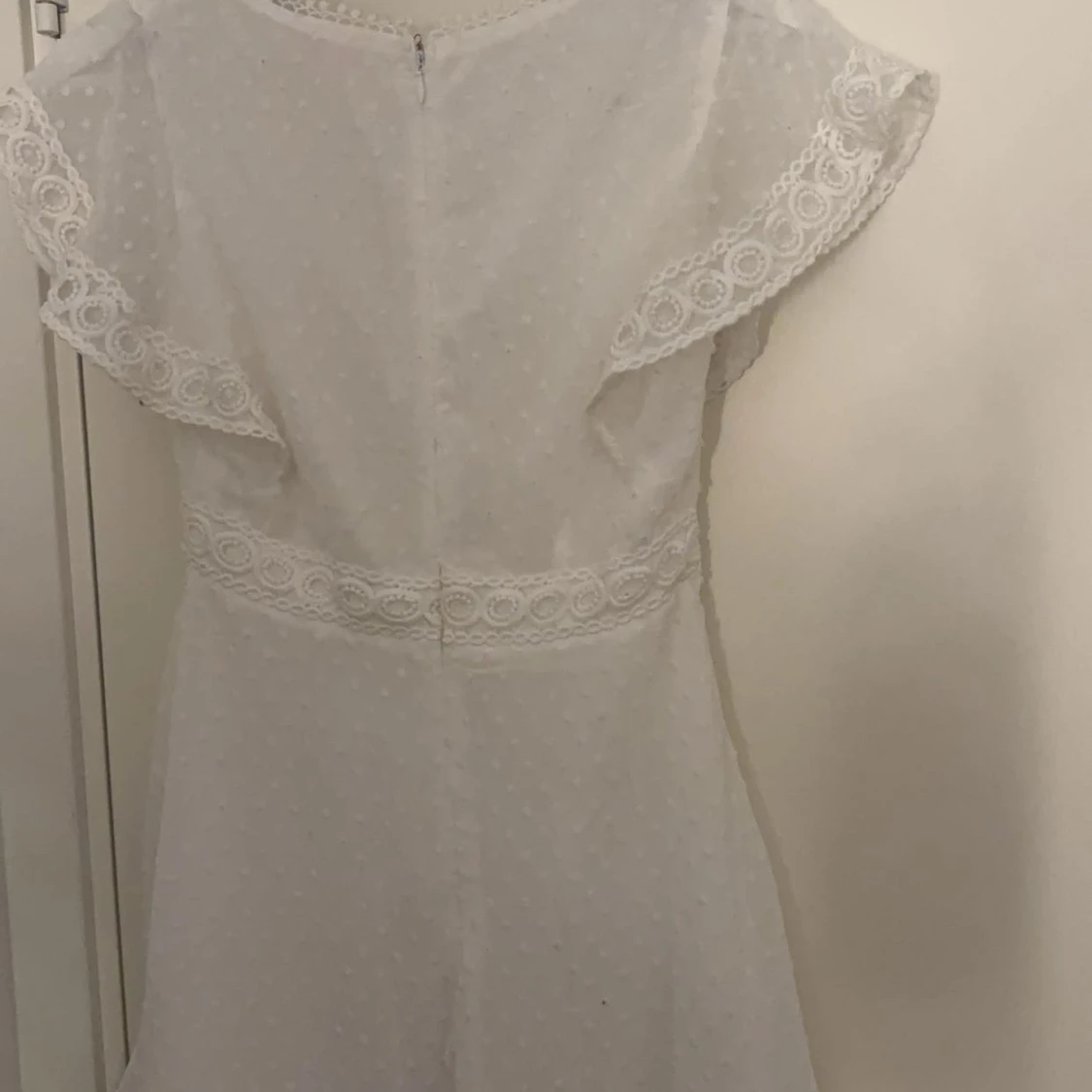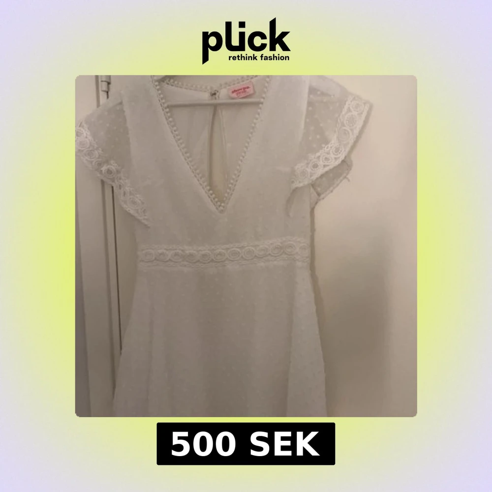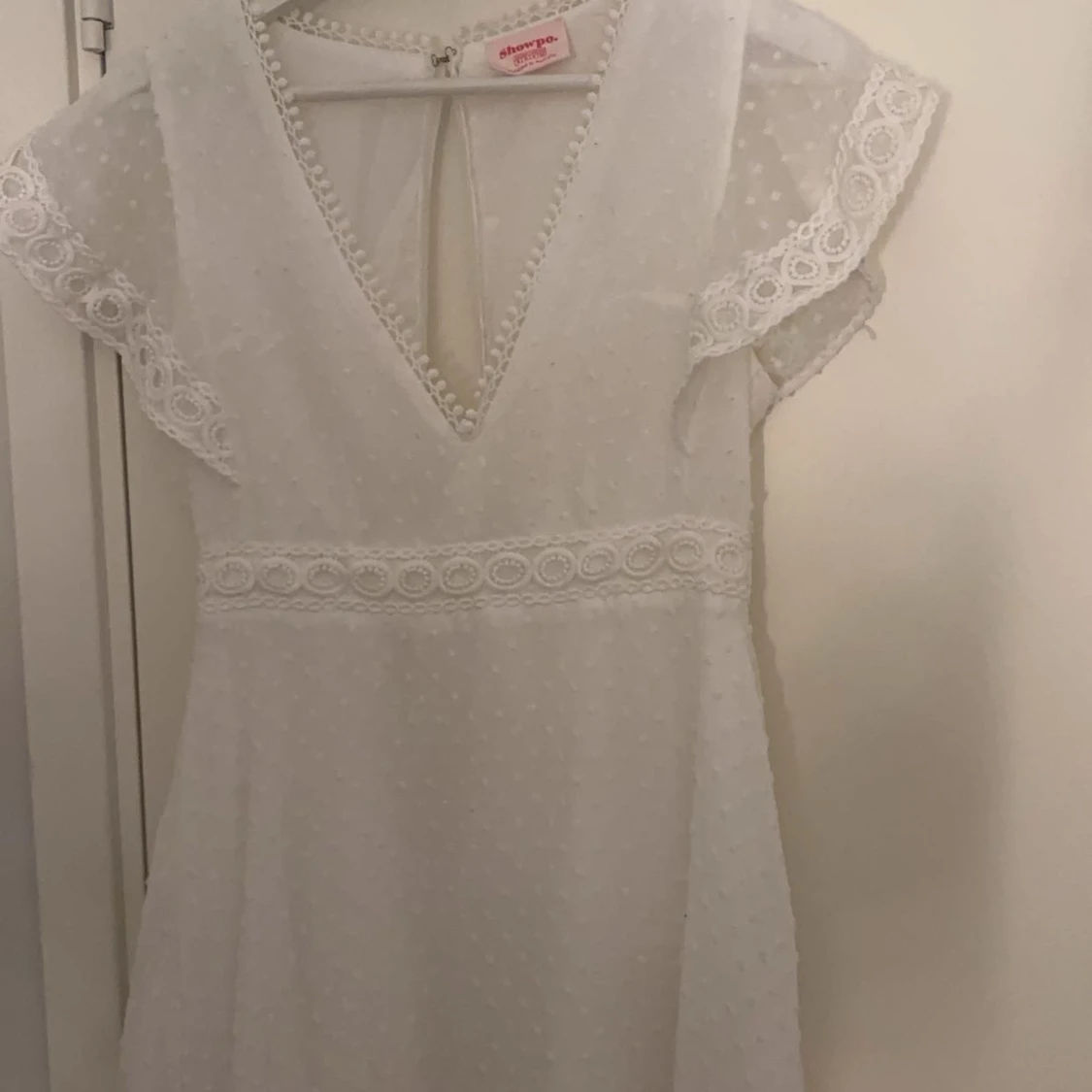 vit klänning från Showpo med v-ringning, spetsdetaljer och korta ärmar i storlek xs/s