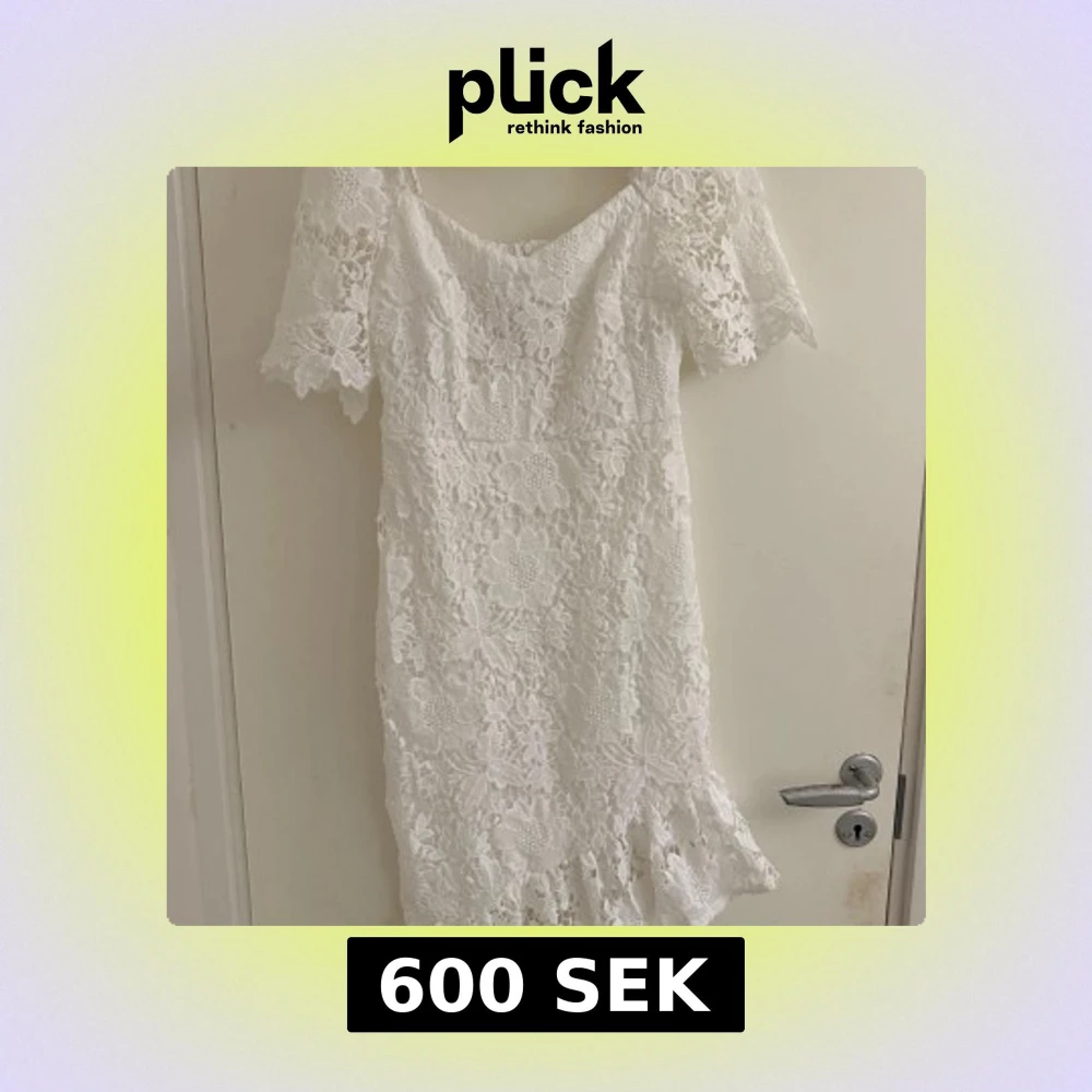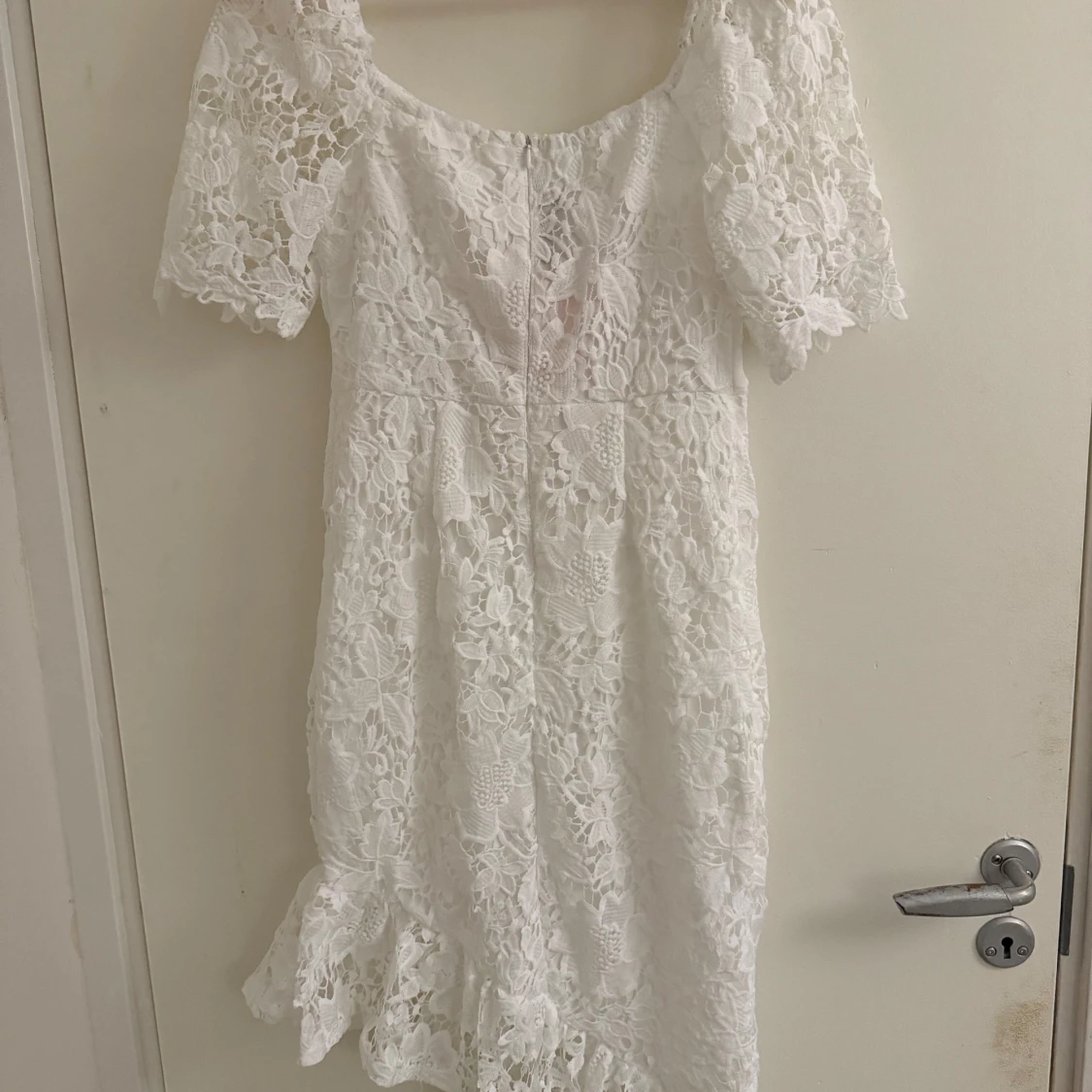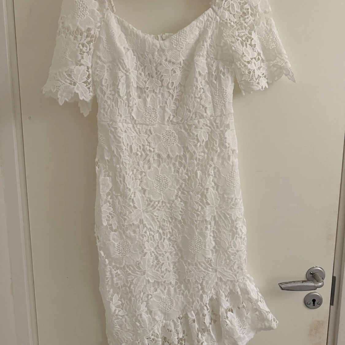 Superfin vit kortklänning i spets med blommigt mönster och volang nertill. Klänningen har korta ärmar och en feminin passform. Perfekt för sommarens alla tillfällen när du vill känna dig extra söt och fräsch.