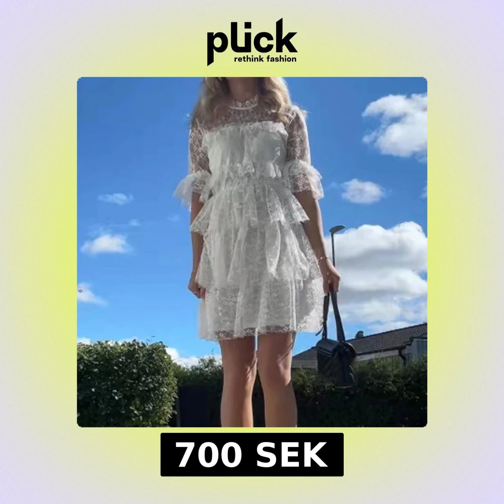 Superfin vit kortklänning i spets med volangdetaljer och trekvartsärm. Klänningen har romantisk känsla med flera lager och transparenta partier. Perfekt för sommarens alla tillfällen och ger en riktigt söt look.