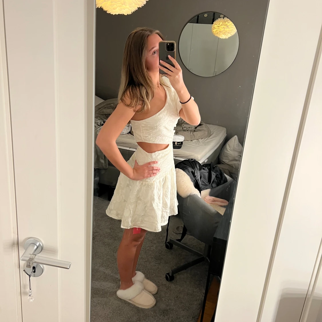 Super söt vit klänning som passar perfekt som studentklänning! Detta var en av mina alternativ till studentklänning men har hittat en klänning som jag ska ha och därför säljer jag denna! Helt oanvänd🥰 Orginalpris: 319kr