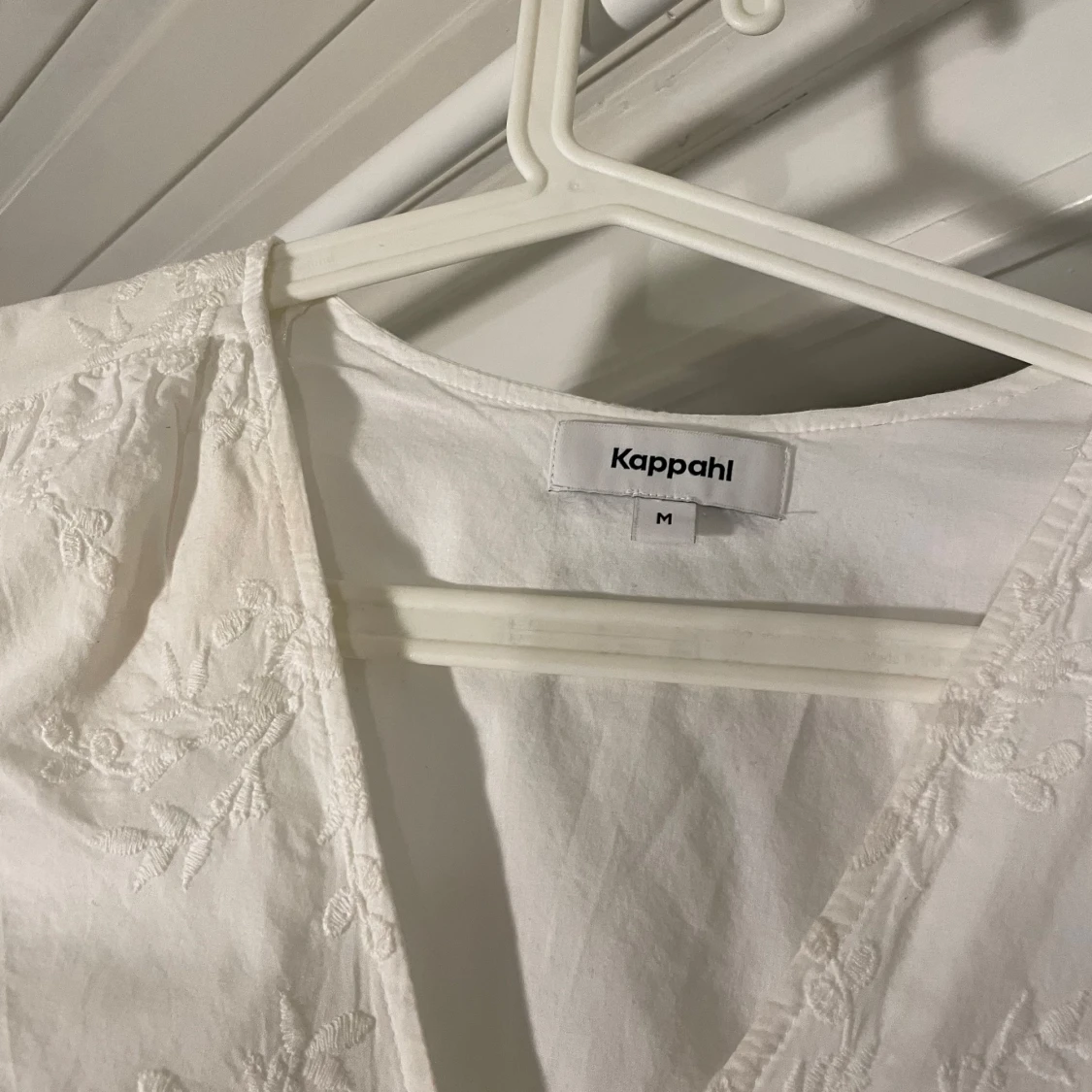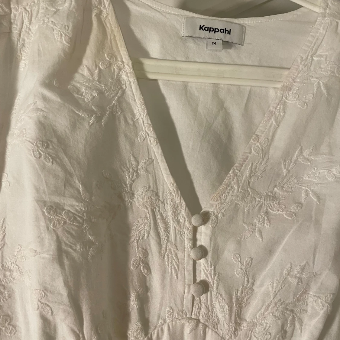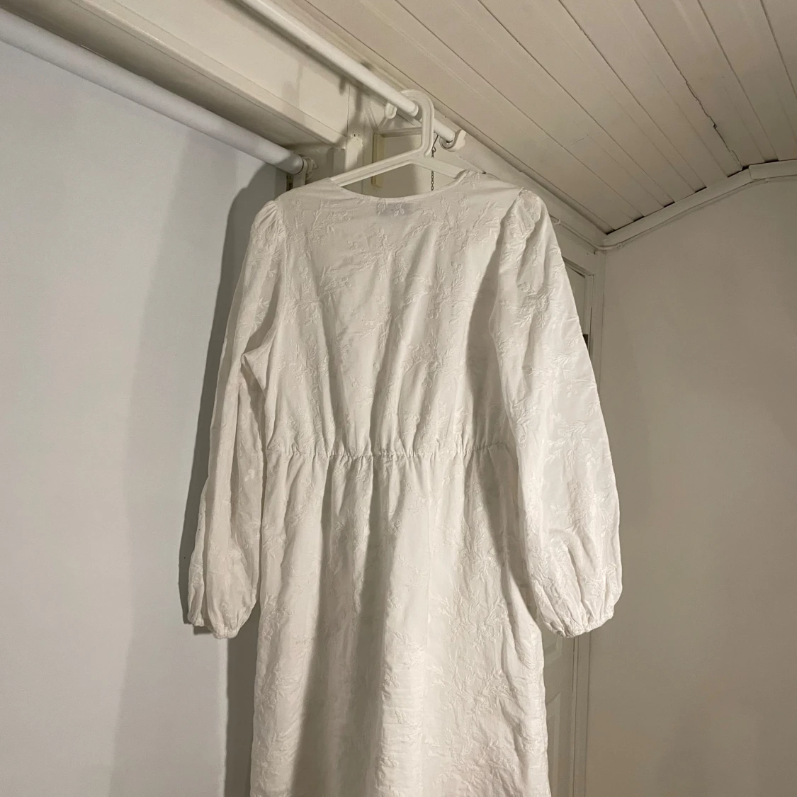 Säljer en vit klänning från Kappahl med broderade blommor och v-ringning. Aldrig använd. Klänningen har långa ärmar och en fin struktur i tyget. Perfekt för student, konfirmation och sommarens alla andra tillfällen!