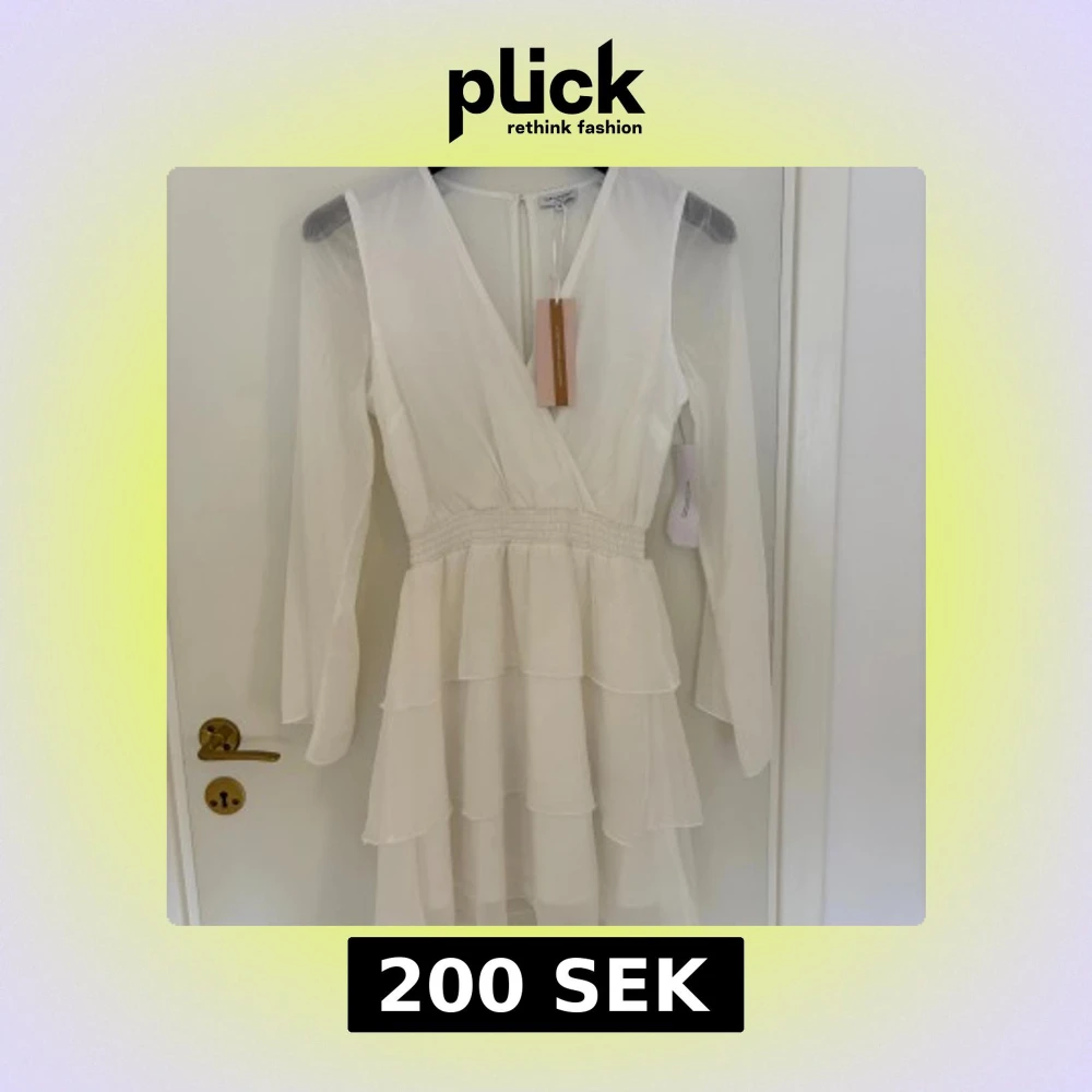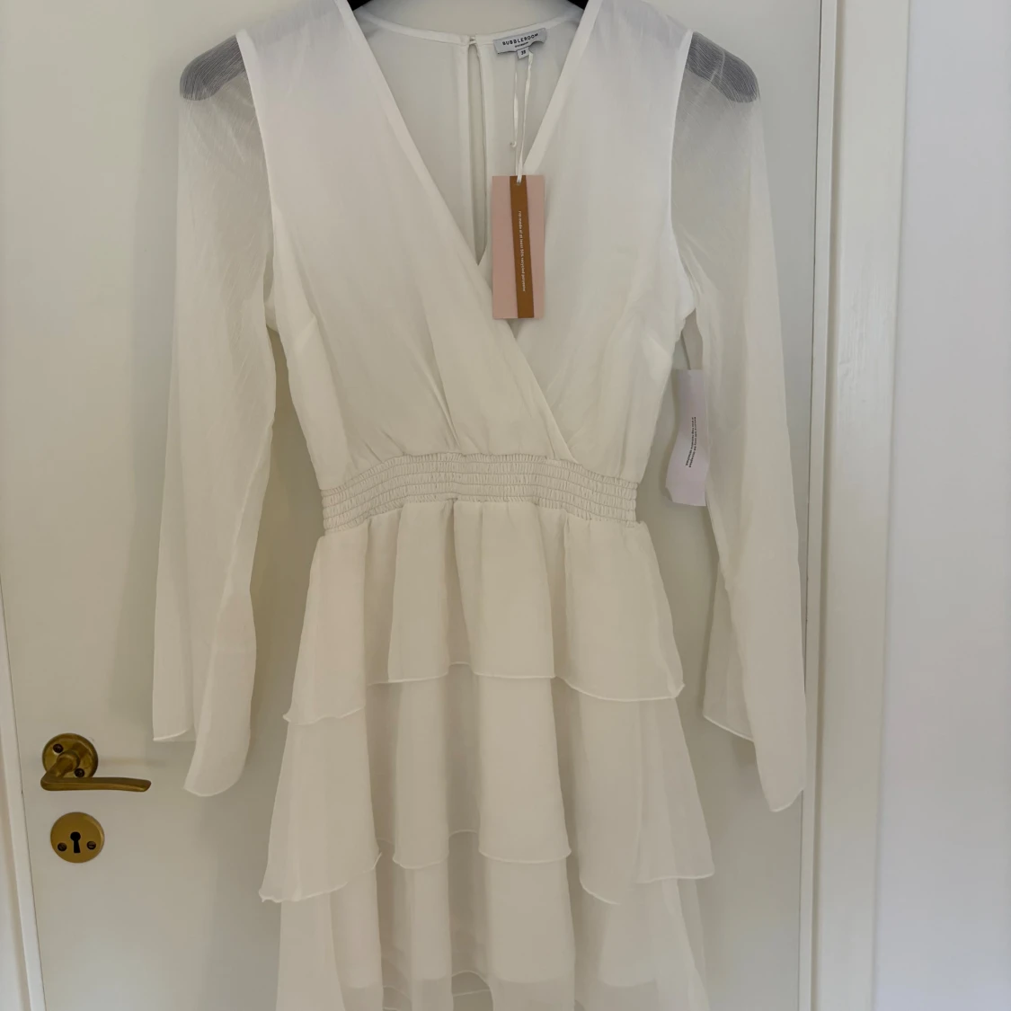 En vit studentkläning ifråm Bubbleroom i storlek 38. Aldrig använd. Nypris: 699kr.