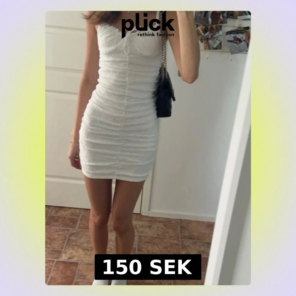 Säljer en söt vit kort klänning med smala axelband och snörning framtill. Klänningen har en figurnära passform och fina broderade detaljer. Perfekt för varma dagar och sommarens alla tillfällen. Skriv för fler bilder💞
