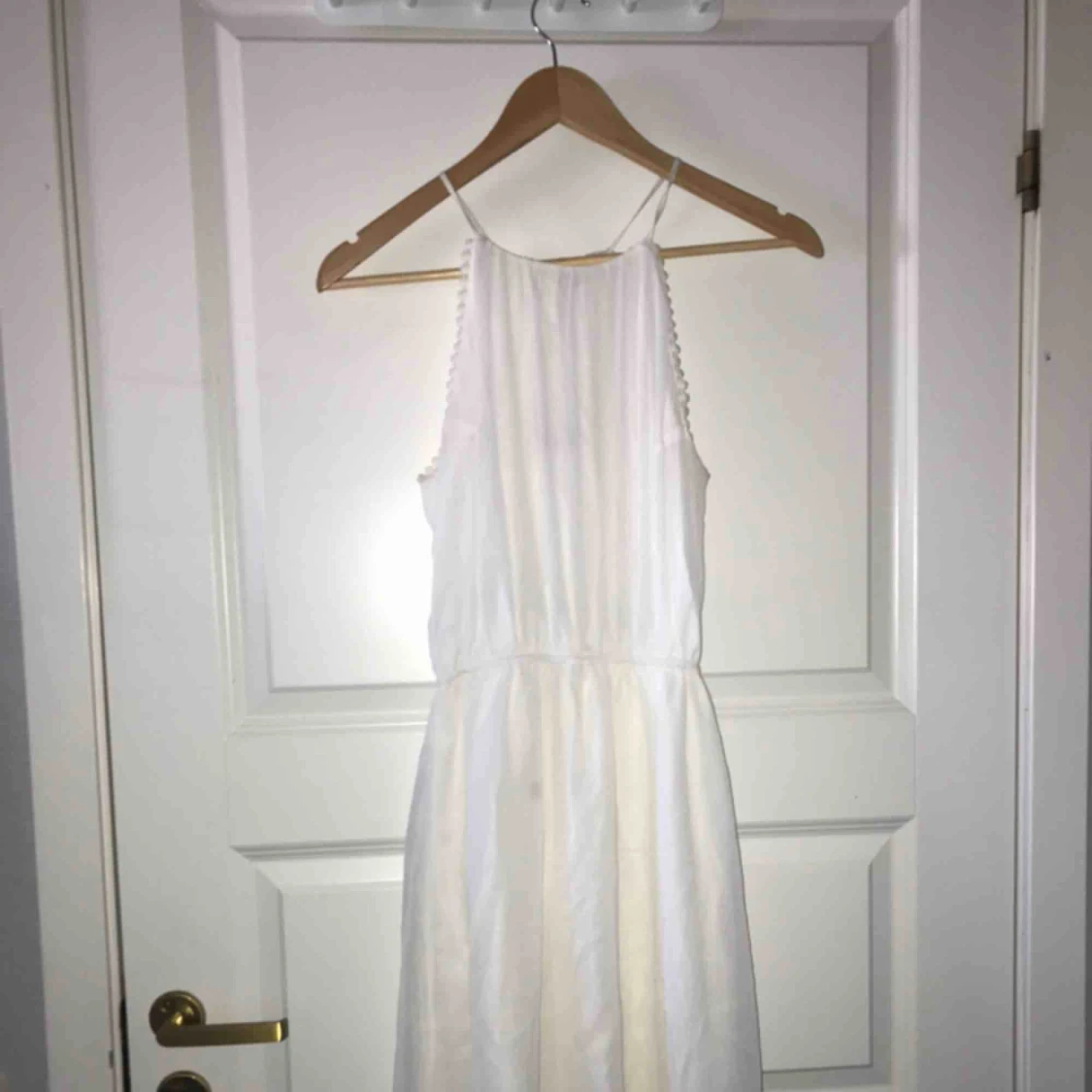 Väldigt fin vit klänning från BikBok💕 Använd i några timmar på en skolavslutning så den är i nyskick Knytning i nacken/ryggen Jag är 1,65 ungefär och klänningen slutar vid låren nästan vid knäna❣️ Skriv för mer info🥰