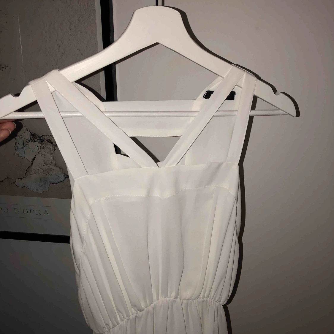 Vit klänning, kort framtill och längre baktill. Cut out i ryggen. Från ett koreanskt märke