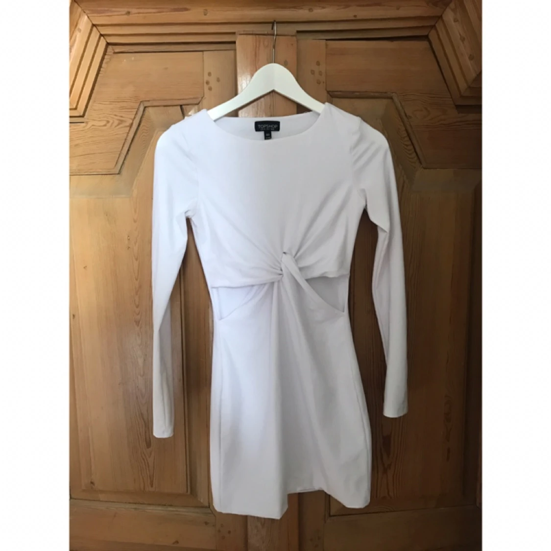 Vit klänning från Topshop med knutdetalj i midjan. Köparen står för frakt ifall du inte kan mötas upp i Stockholmsområdet. Betalad via swish.