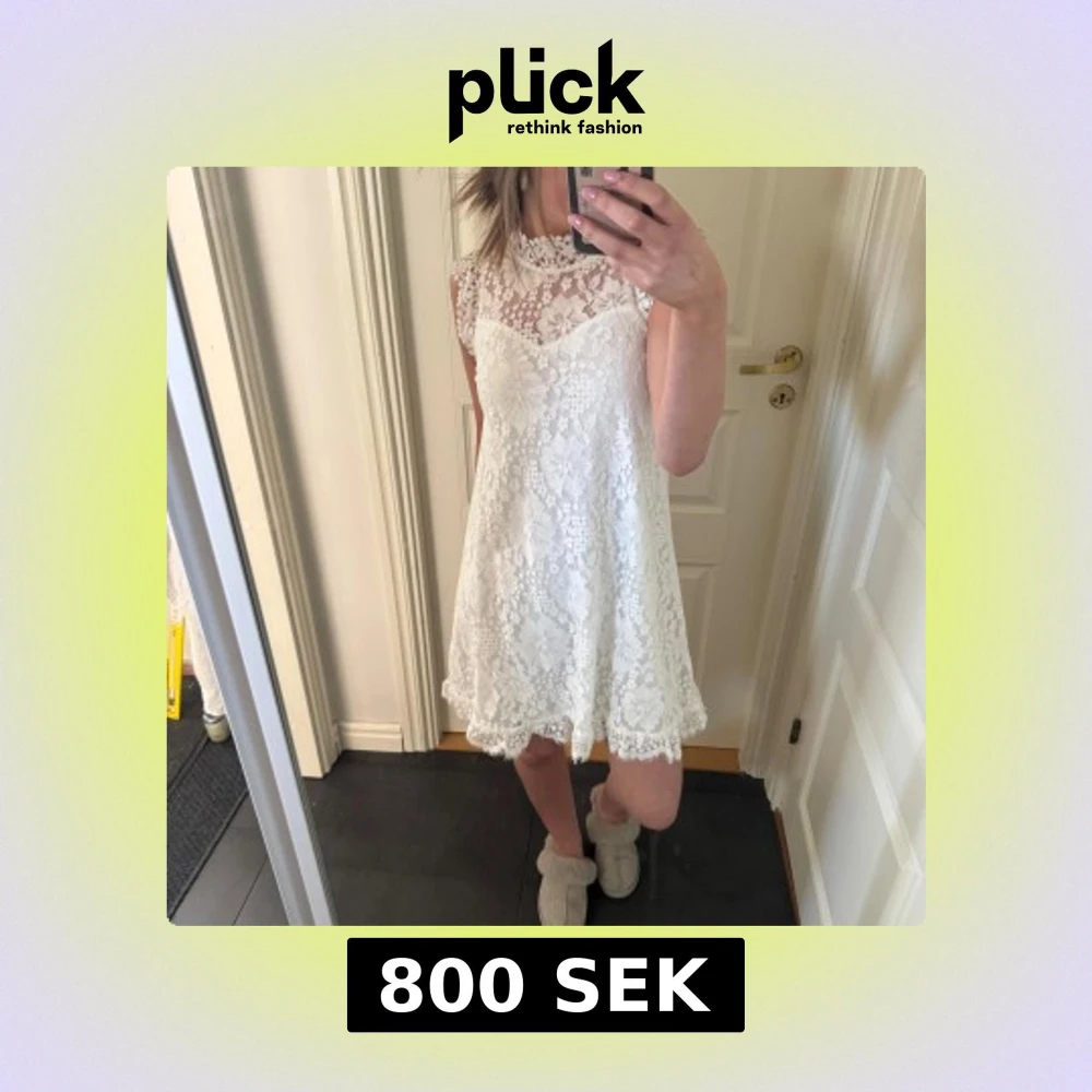 Säljer en söt vit klänning i spets med hög hals och ärmlös design. Klänningen har A-linjeform och fina spetsdetaljer över hela plagget. Perfekt för sommarens tillfällen eller studentfirande. Helt ny med lappen kvar. Märket är Dry Lake Stockholm, nypris 1500. Hör av er vid eventuella frågor eller fler bilder!🥰