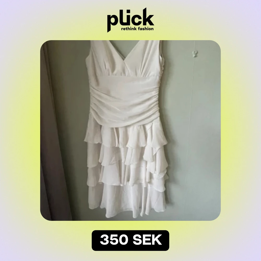 Säljer den här jätte gulliga vita volangklänning eftersom den inte kommer till användning. Har endast använt en gång så den har inga defekter och är nästan som nu💗