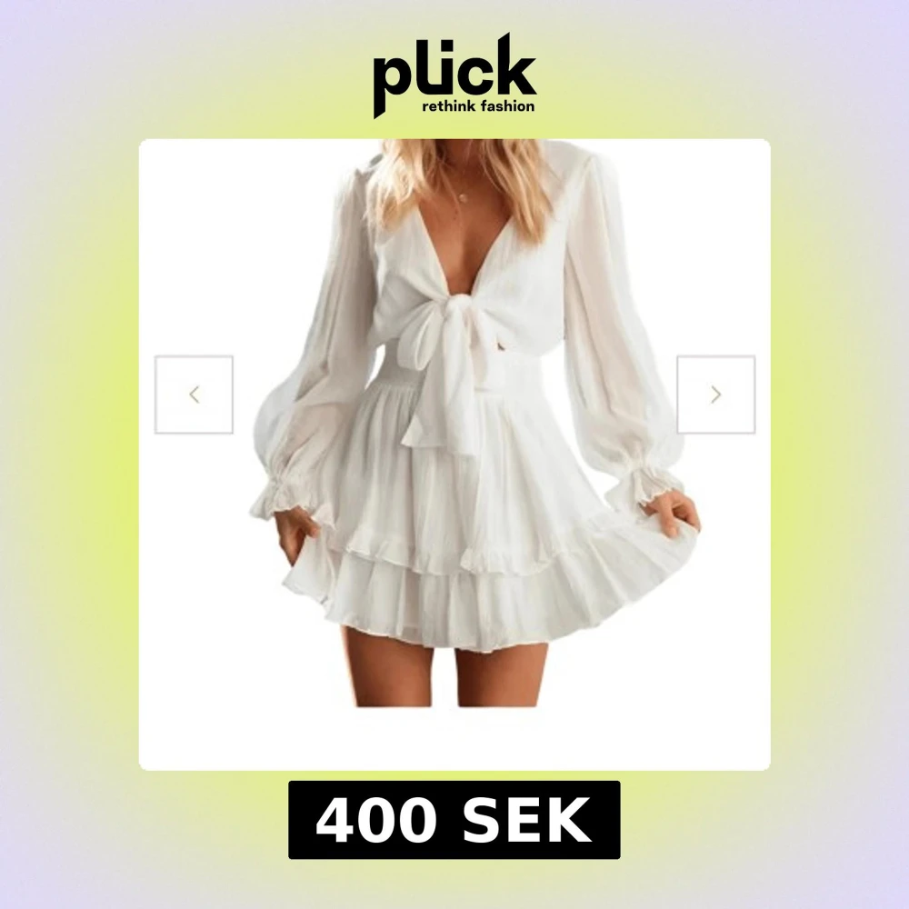 Fin vit klänning från Dressy som man kan ha till studenten eller sommaren. Oanvänd💕Storlek M, skriv för egna bilder