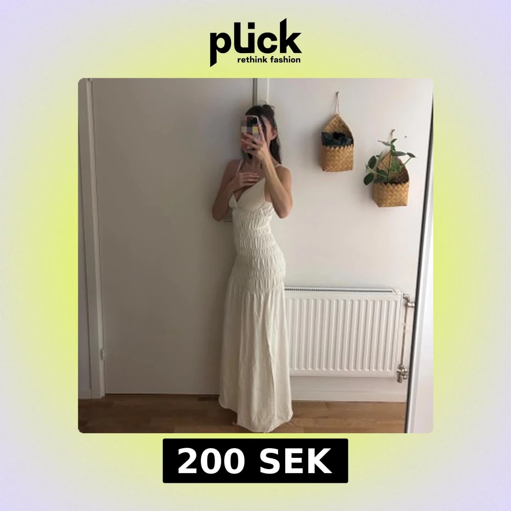 Vit långklänning med v-ringad front och tunna axelband. Mjukt material med elegant.