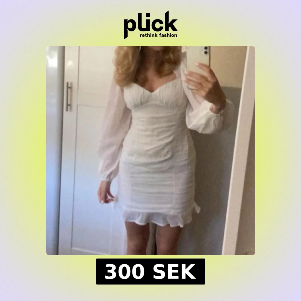 Säljer en vit klänning från Nelly med långa ärmar och volangdetaljer. Klänningen har en v-ringad design och dragkedja i ryggen. Perfekt för speciella tillfällen! Endast använd en gång och därav i nyskick
