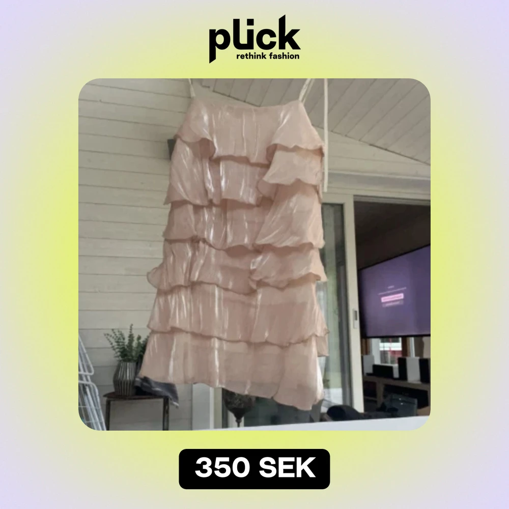 Säljer denna super fina klänning då den tyvärr är för kort för mig. Helt oanvänd bara testad. Helt slut på hemsidan. Är från Shein men bra kvalite ändå, dyrare variant då den är tillverkad tillsammans med Forever 21. Färgen är lite aprikos/ ljusrosa