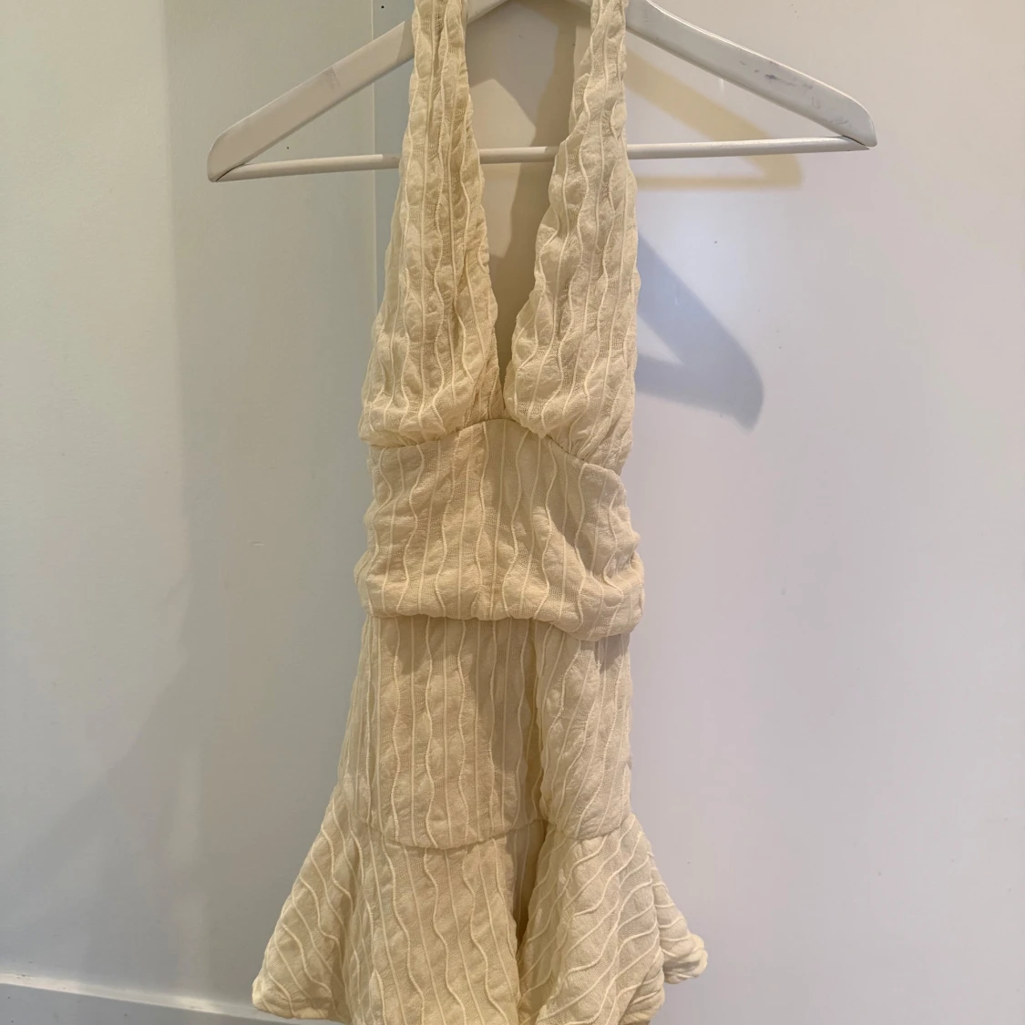 Beige klänning, har en smink fläck på innersidan (se sista bilden) men inget som syns när man har på den!