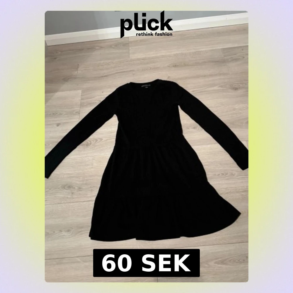 En svart klänning från xoxo friends med ribbad struktur, lång ärm och rund hals. Kjolen har volangdetaljer och klänningen är i en mjuk, stretchig bomullsblandning. Perfekt för dig som gillar enkel men snygg stil.