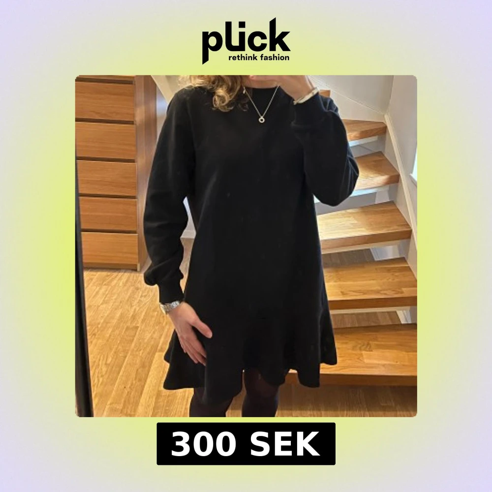 Svart kortklänning från Threadbare med rund hals och långa ärmar. Klänningen har en loose passform och avslutas med en bred volang nedtill. Passar perfekt till höst och vinter🤎