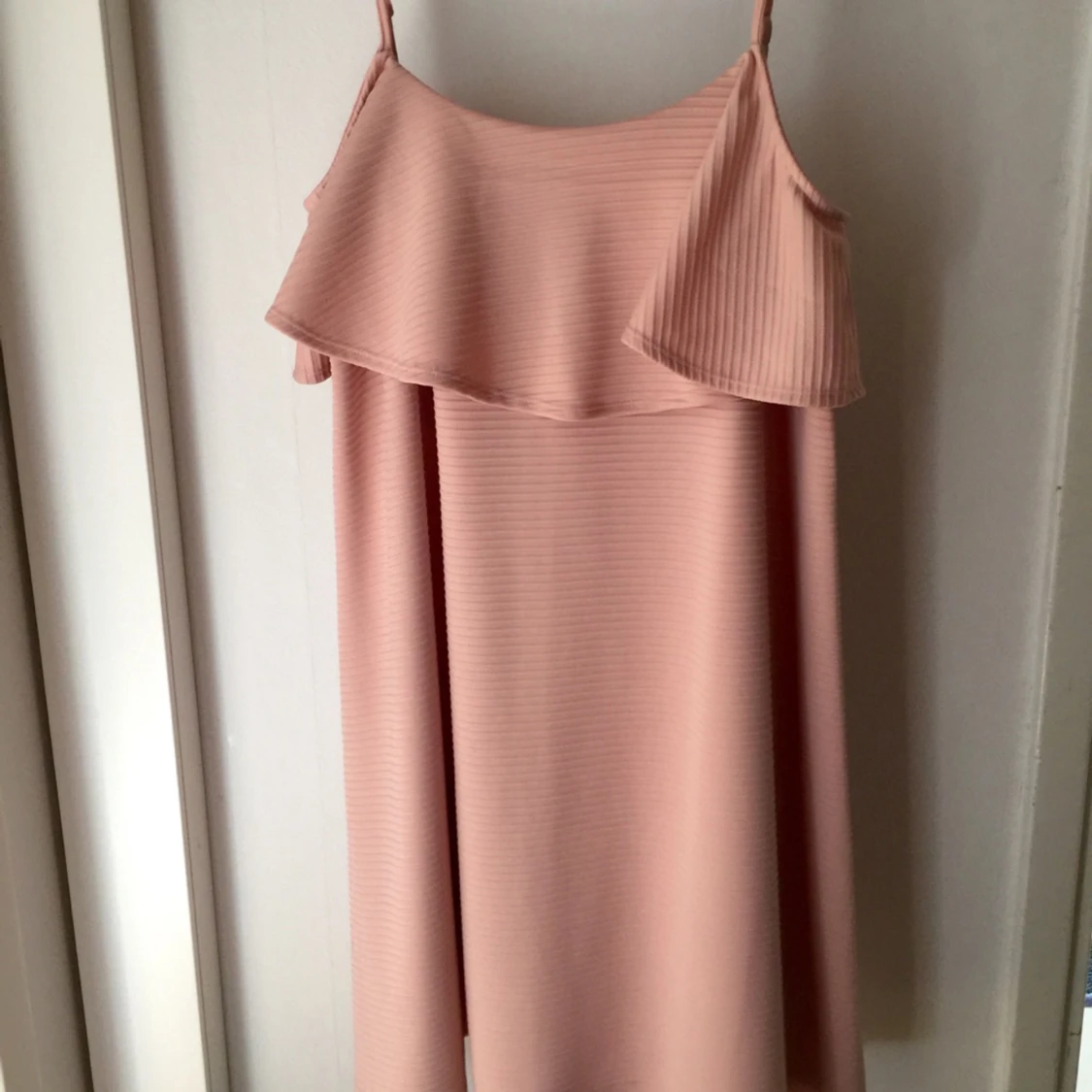 Gammelrosa klänning med tunna axelband. Lite volang runt bysten. Använd 1gång!