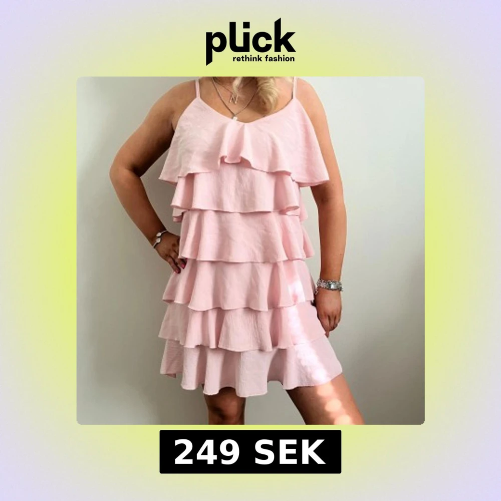 Rosa volangklänning storlek S men passar också XS💗🌸 har ett litet hål på insidan som ej syns, samt några små fläckar som troligtvis går bort! 249kr