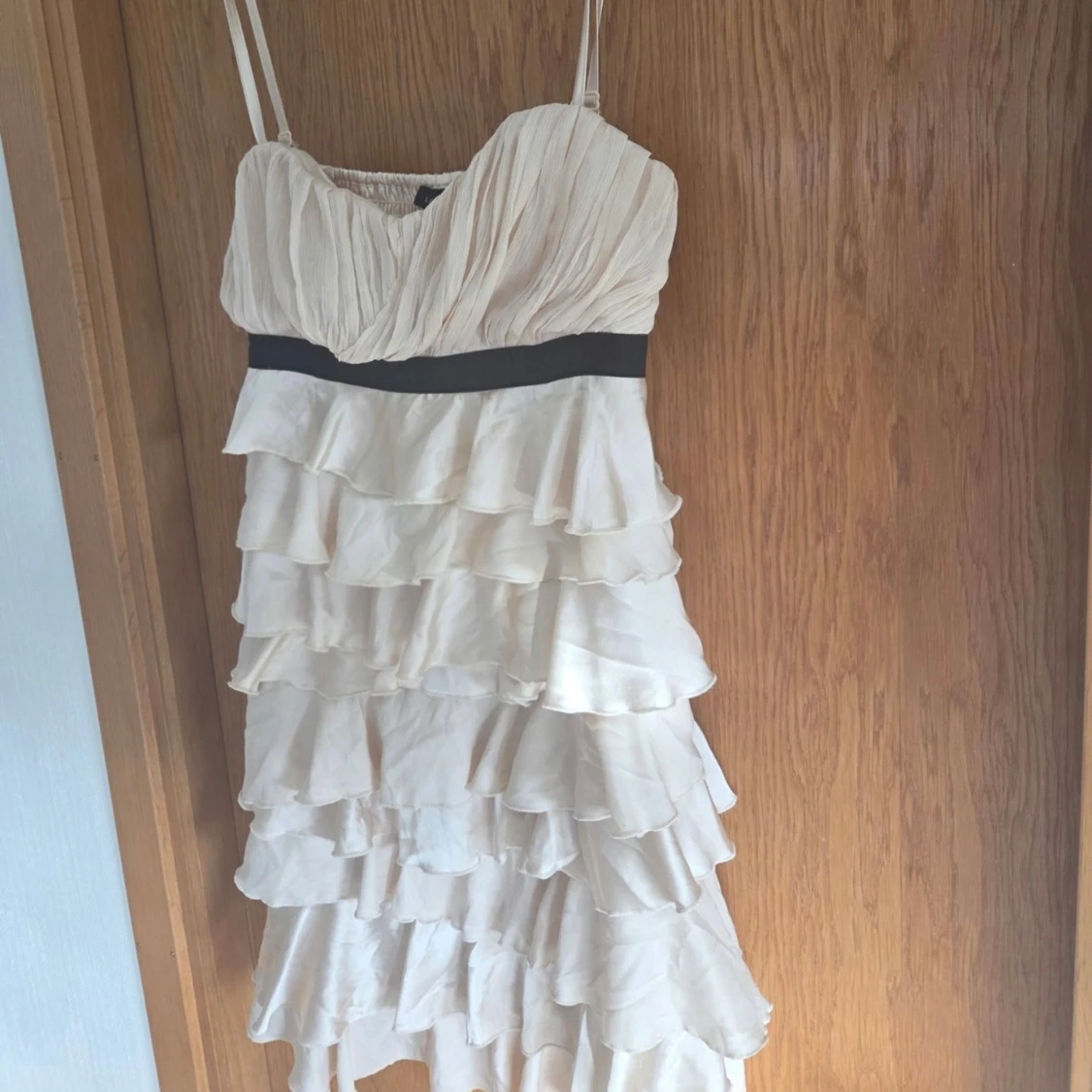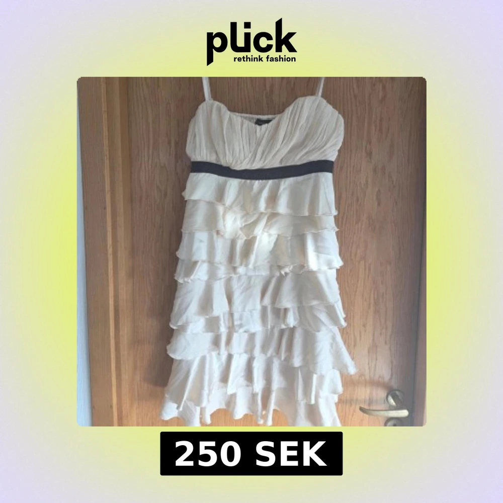 Jättefin klänning från Lindex med volanger. Beige-rosa i färgen och har ett svart band under bysten! Väldigt cool design💞💞