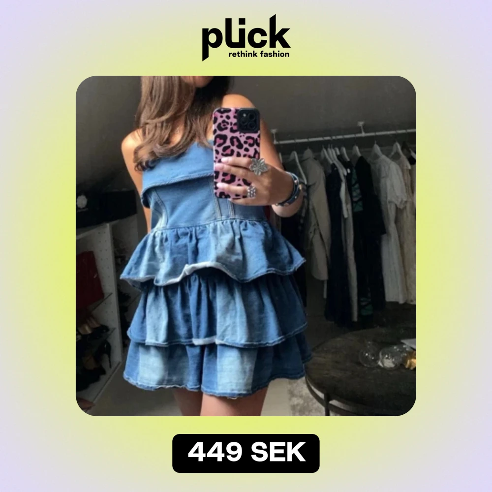Så unik klänning! Med fina volanger! Klänningen är uppvikt vid brösten på bilden men går att vika ner! 💙
