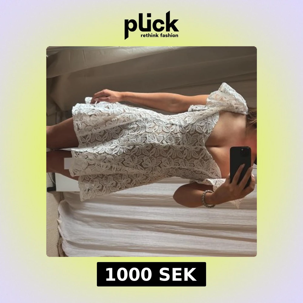 Superfin vit kortklänning i spets med blommigt mönster och volangdetaljer vid axlarna. Perfekt till student! Köpt från miss rosier storlek S