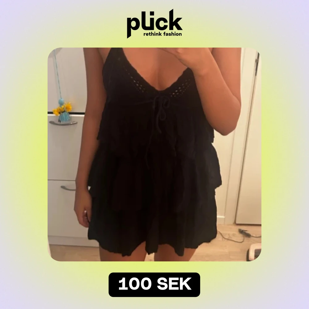 En svart volaning klänning från zara. Lite kort i längden💕 stolek S