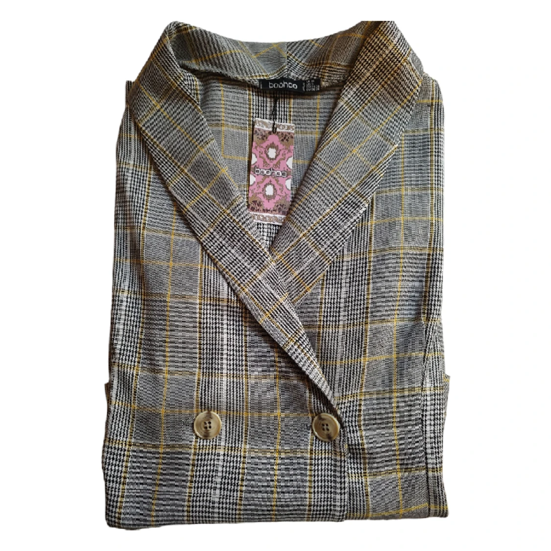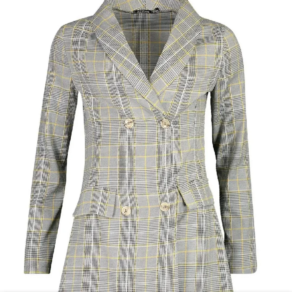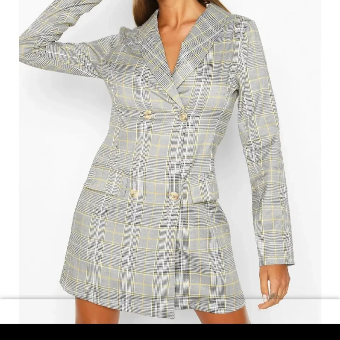 Rutig ljusgrå Blazer klänning i nyskick. Prislapp kvar OBS: Första bilden är tagen av mig(klänningen är ljusare i verkligheten). Resterande två är lånade av BOOHOOs hemsida.