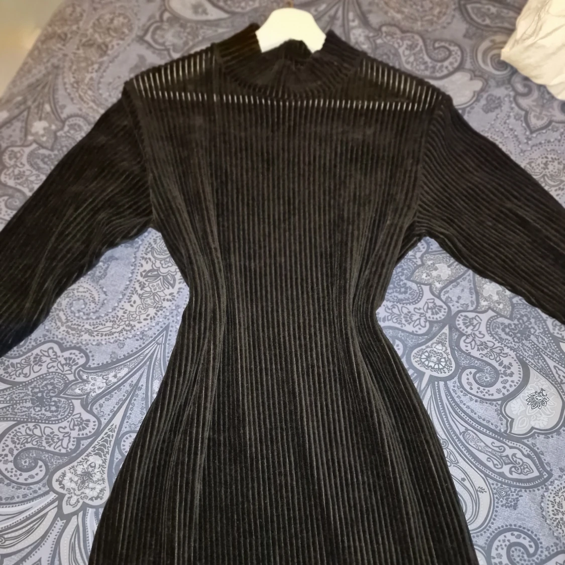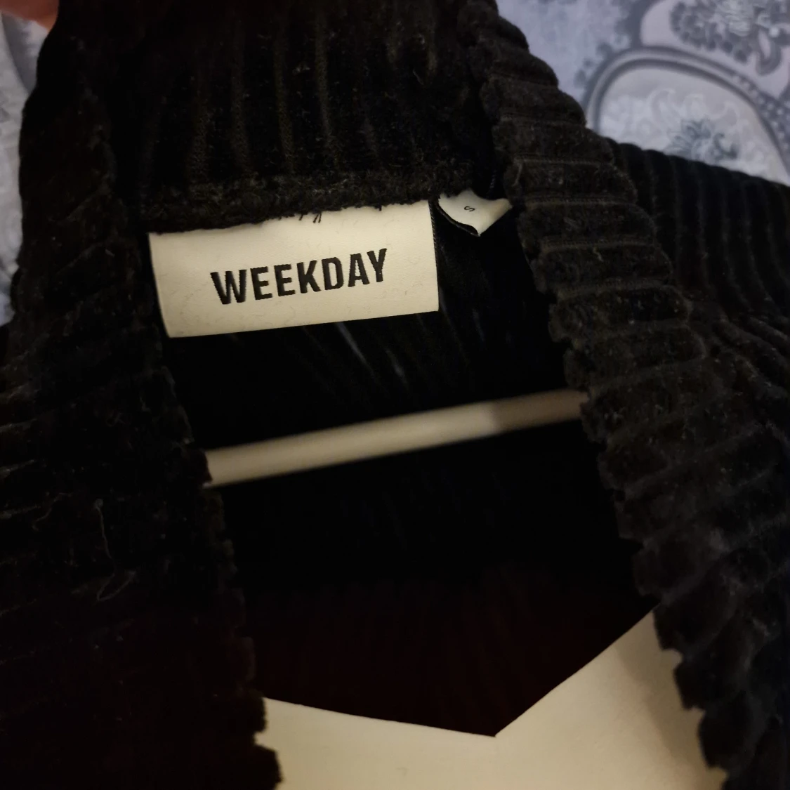 Svart manchesterklänning från Weekday med lång ärm och hög krage. Snygg med sneakers och även höga boots till hösten 🍁