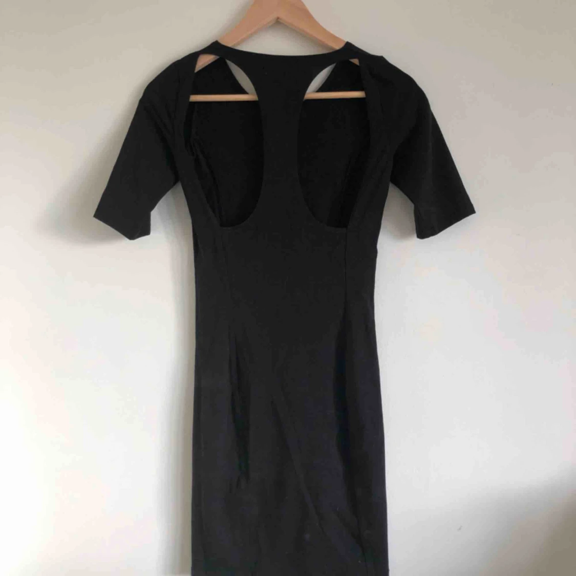 Svart tight klänning med utskuren rygg. 3/4 ärm gjord i bomull